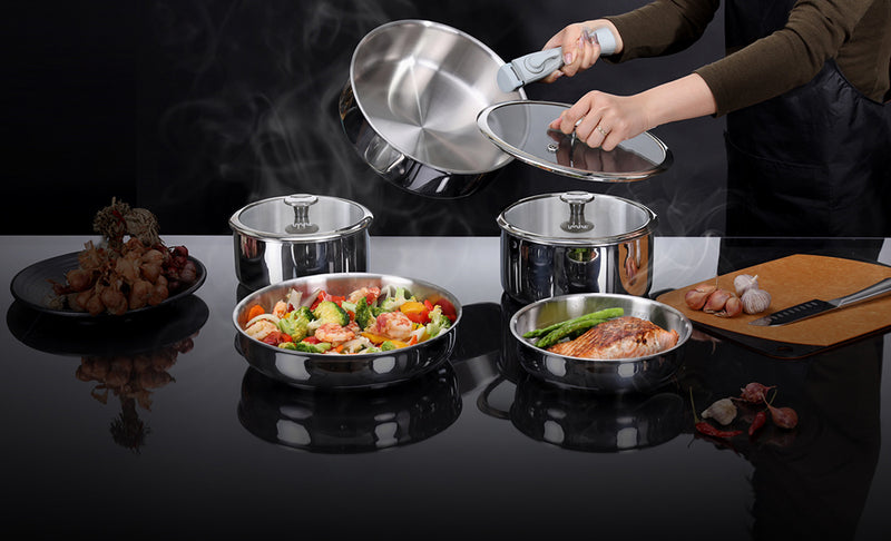 Bộ nồi chảo iNox cán rời 9 món - Không phủ lớp chống dính