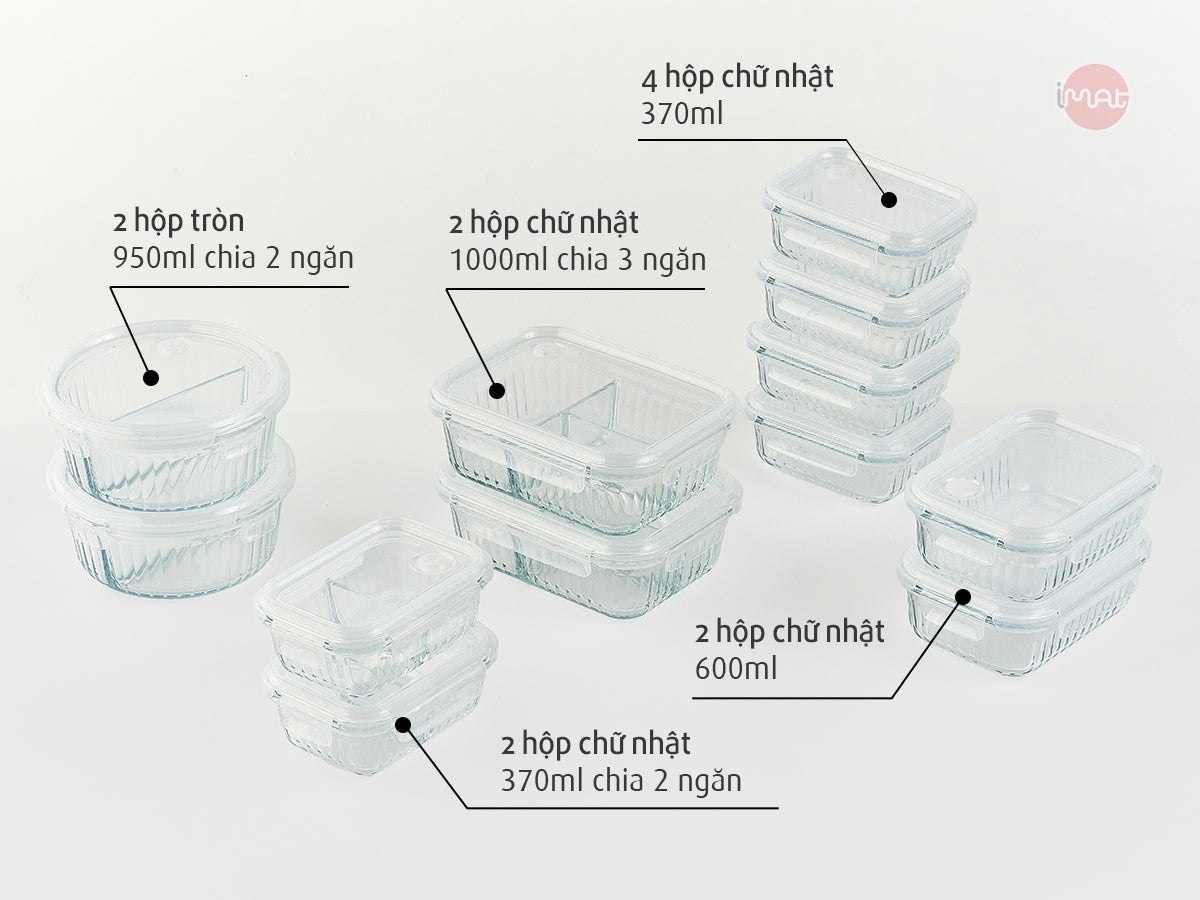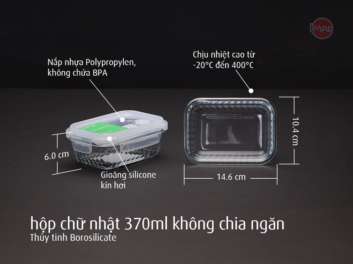 - 6 hộp 370ml: 4 hộp không chia ngăn và 2 hộp chia 2 ngăn.