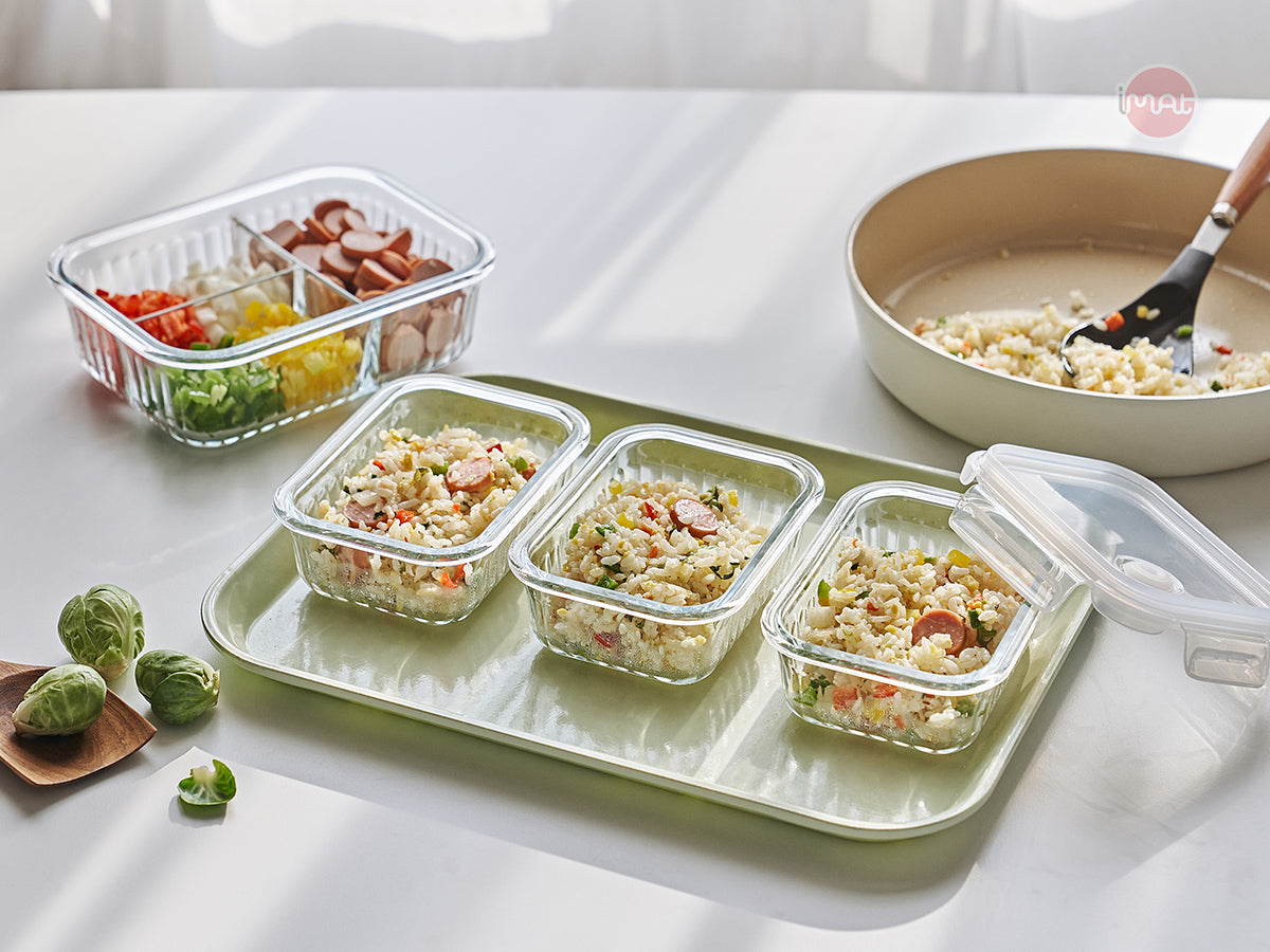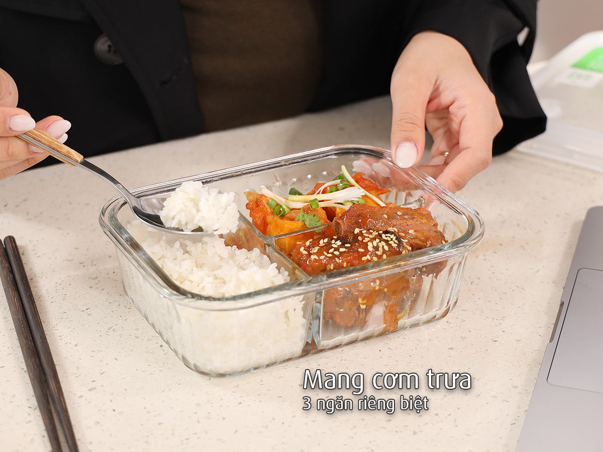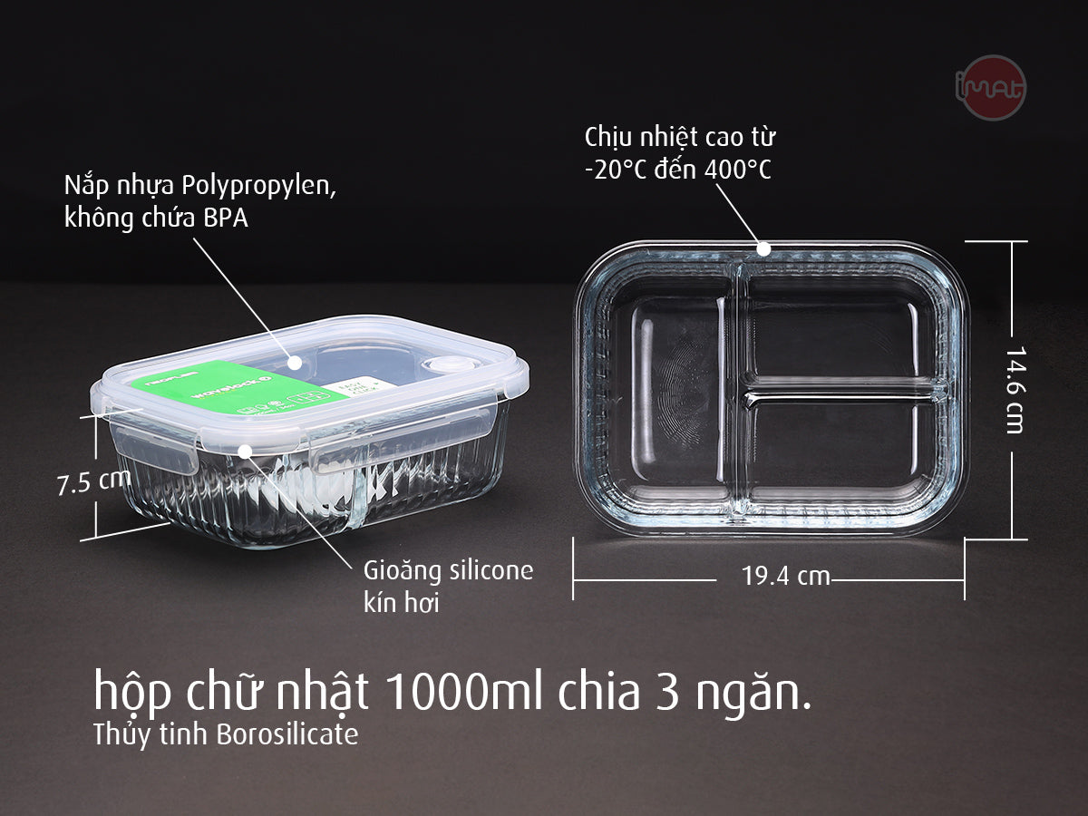 - 2 hộp chữ nhật 1000ml chia 3 ngăn.