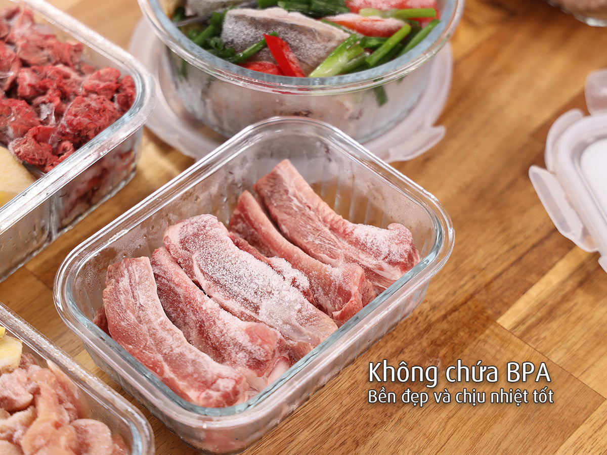 Thủy tinh Borosilicate chịu nhiệt cao từ -20°C đến 400°C, không mùi, không phai màu.