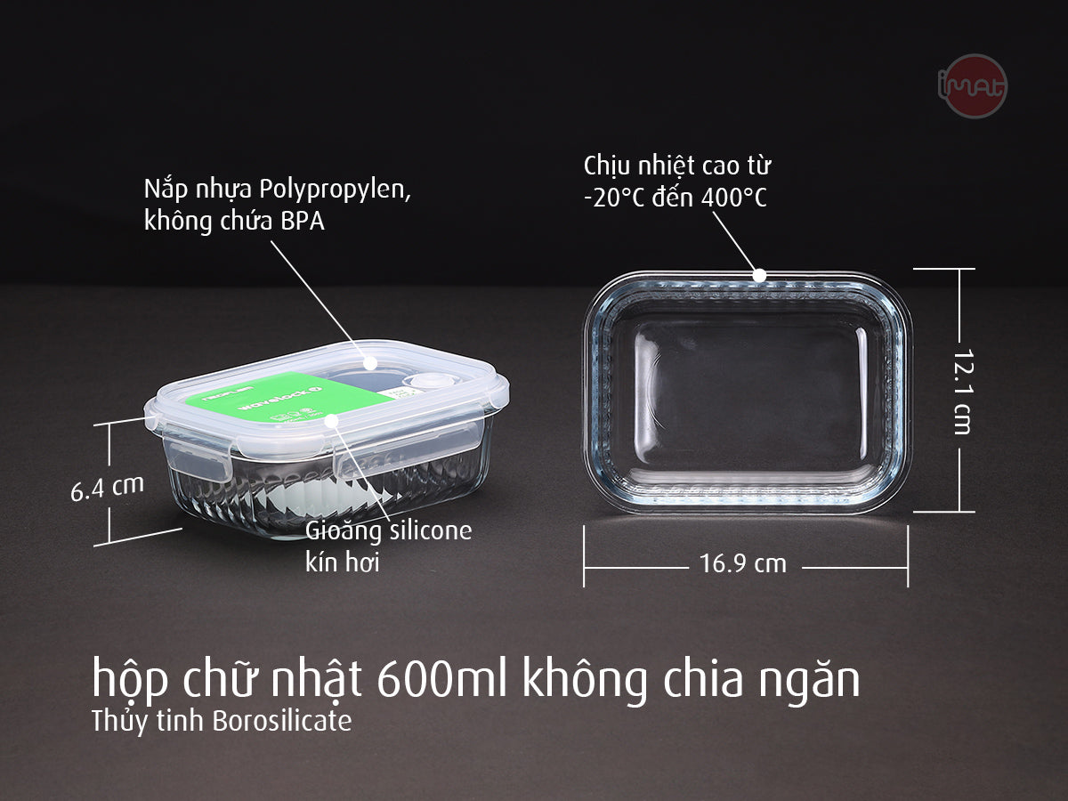 1 x Hộp chữ nhật không chia ngăn (600ml)