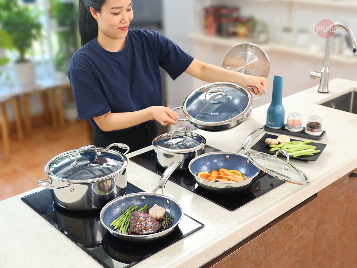 Bộ nồi chảo iMat Hybrid là sự kết hợp hoàn hảo giữa thiết kế hiện đại, công nghệ tiên tiến và tính an toàn. Đây là người bạn đồng hành đáng tin cậy trong mọi căn bếp!