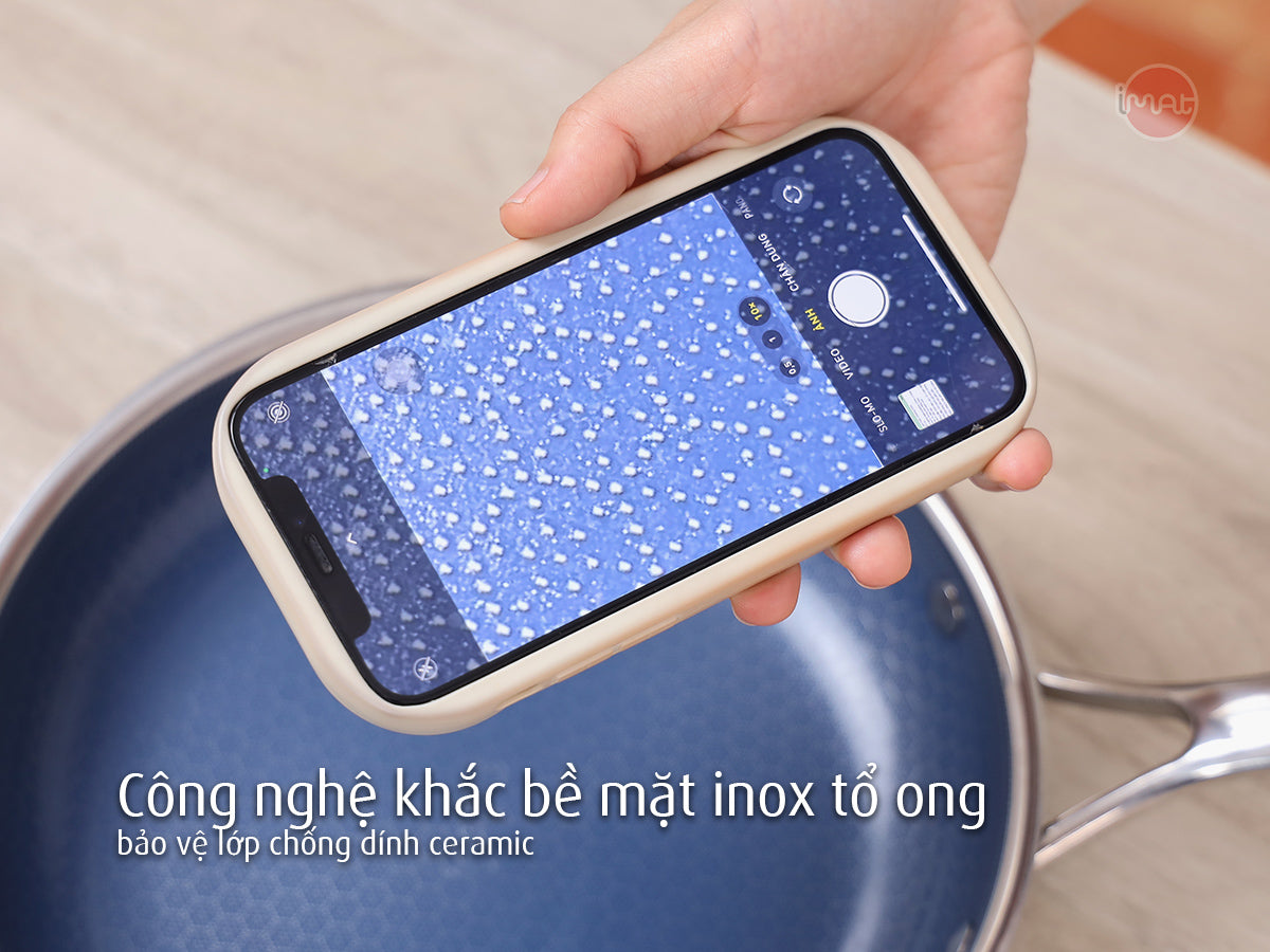 - Blackcube và lớp chống dính gốm xanh: Công nghệ khắc bề mặt inox tổ ong bảo vệ lớp chống dính ceramic, không chứa PFOA/PTFE, an toàn cho sức khỏe và thân thiện với môi trường.