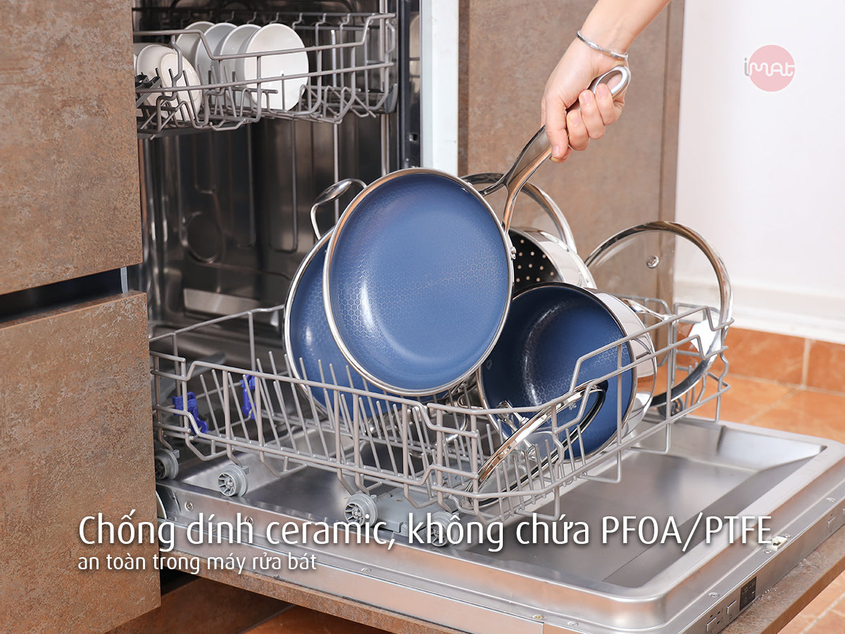 - Dùng được trong máy rửa chén: Lớp chống dính gốm chắc chắn, chịu được lực phun rửa mạnh.