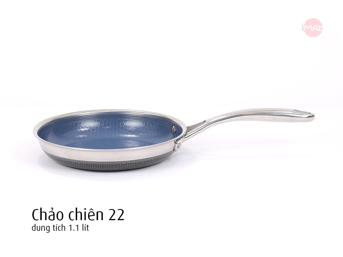 - Chảo chiên 22cm: 43.7 x 23.7 x 4.3 cm, 850g, dung tích 1.1 lít.