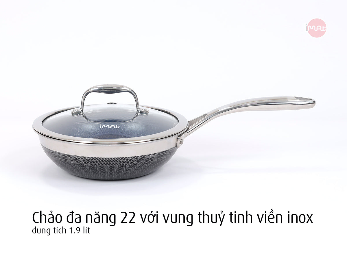 - Chảo đa năng 22cm: 43.6 x 23.6 x 7.0 cm, 1537g, dung tích 1.9 lít.