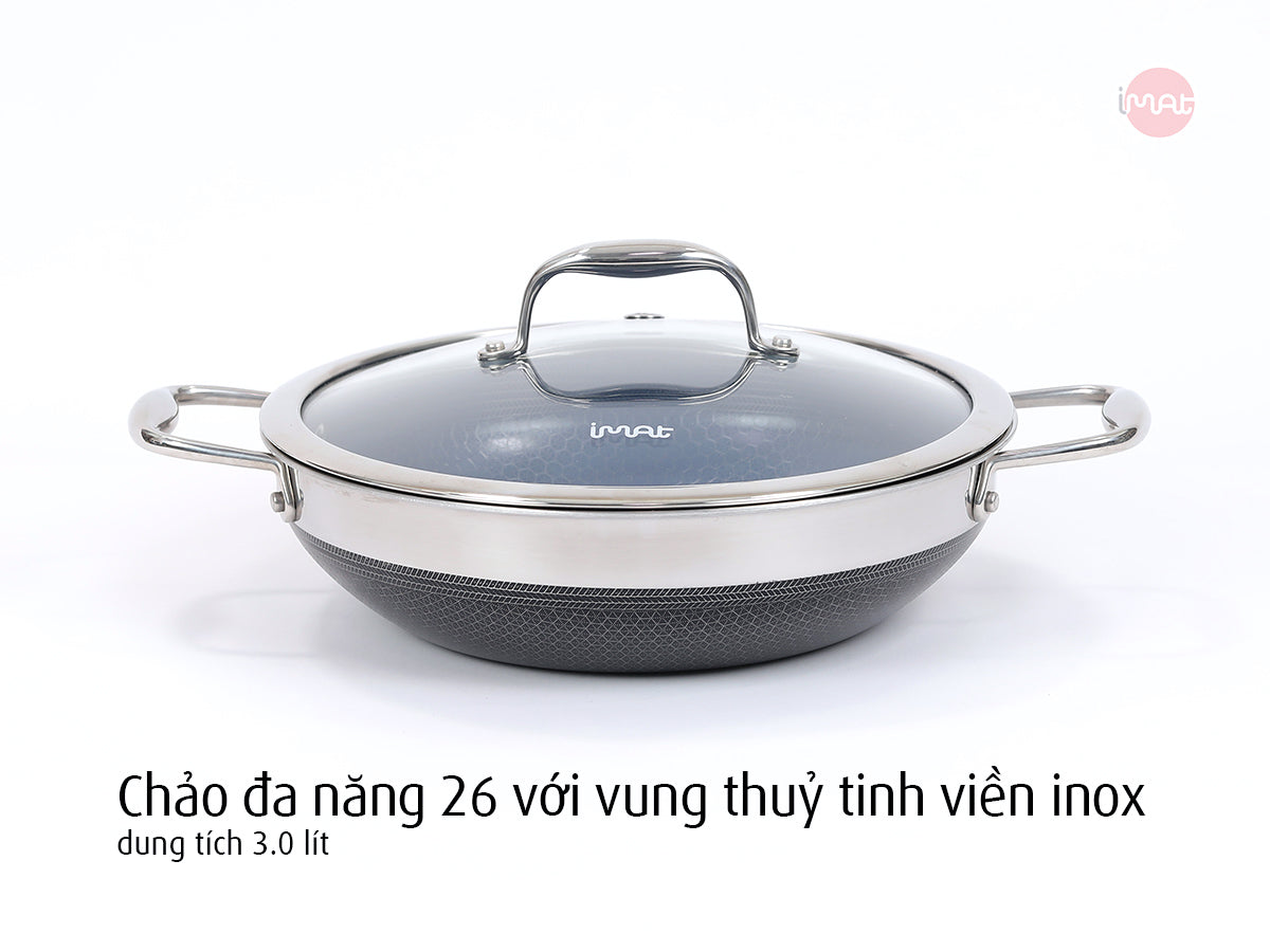 Chảo đa năng 26cm: Dung tích 3 lít, sâu lòng, hai tay cầm tiện dụng, hoàn hảo cho các món chiên, xào hoặc lẩu gia đình.