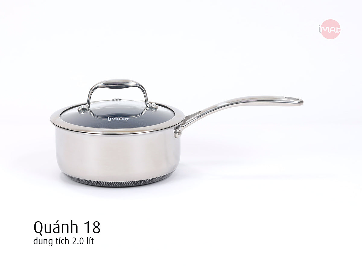 - Quánh 18cm: Dung tích 2 lít, thiết kế cán dài chống nóng, dễ thao tác. Chống dính ceramic cao cấp giúp nấu nướng, vệ sinh và lưu trữ tiện lợi.