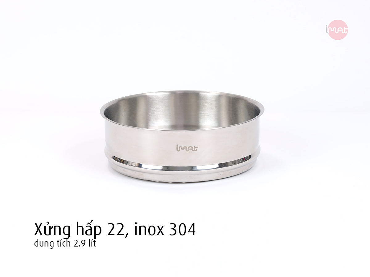 - Xửng hấp 22cm: 23.3 x 23.3 x 6.7 cm, 470g, dung tích 2.9 lít.