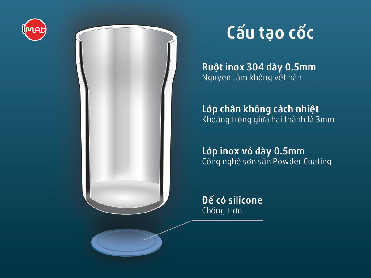 Thành inox 304 dày 0,4-0,5mm. Cốc 380ml là inox 316 dày 0,4-0,5mm