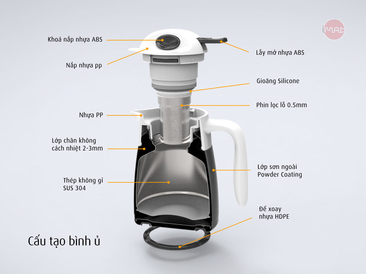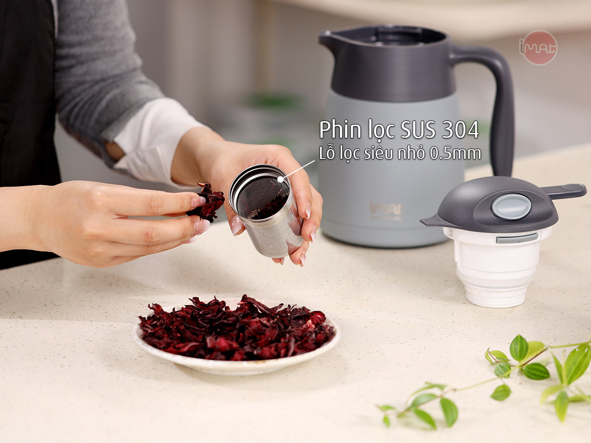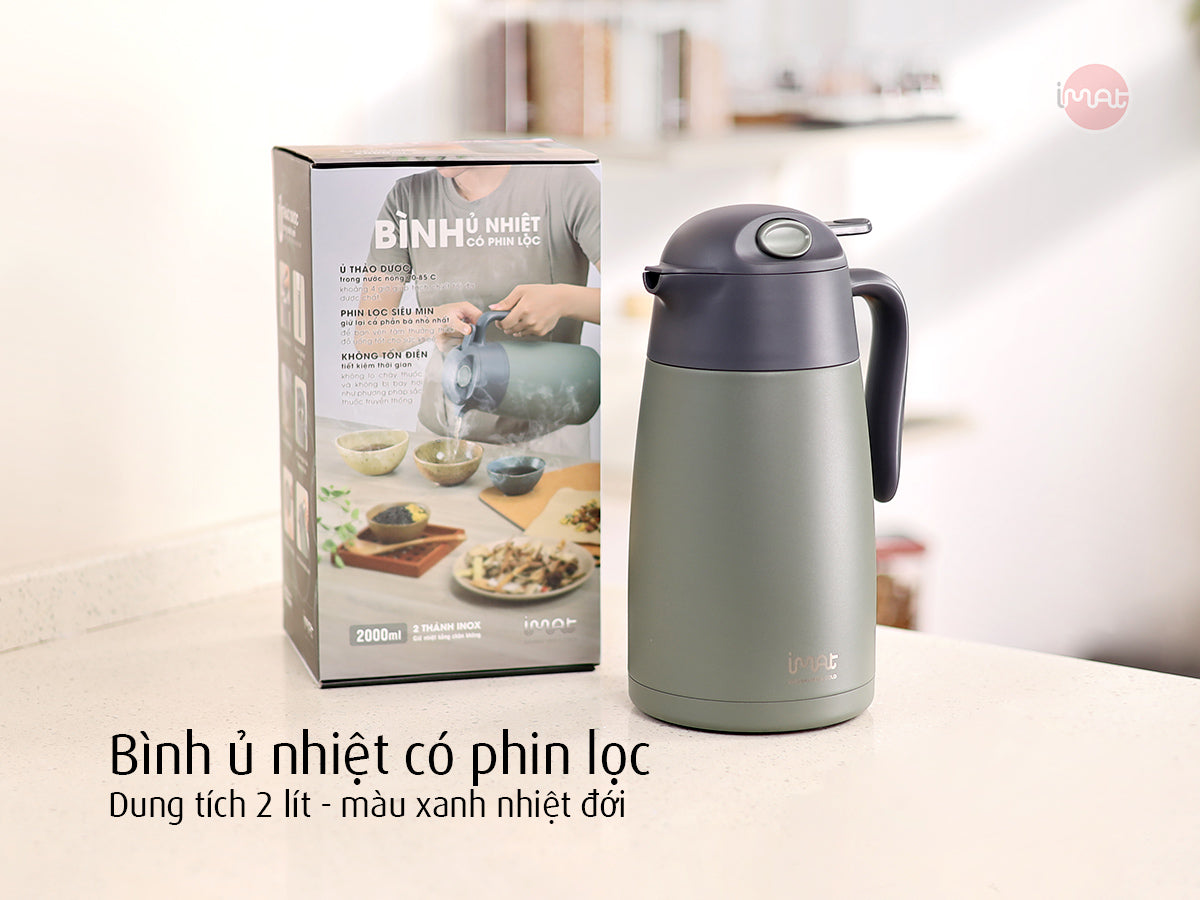 Bình Ủ Nhiệt Có Phin Lọc iMat là giải pháp hoàn hảo giúp khách hàng thưởng thức đồ uống yêu thích ở nhiệt độ lý tưởng vào bất cứ lúc nào. Với thiết kế cách nhiệt chân không, phin lọc siêu mịn và chất liệu cao cấp, đây là sản phẩm lý tưởng cho những ai yêu thích sự tiện lợi và tinh tế trong từng hớp trà, thảo dược.