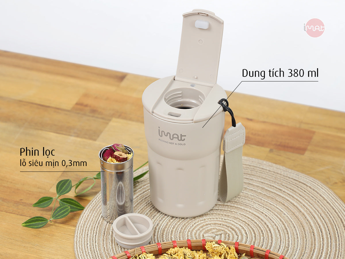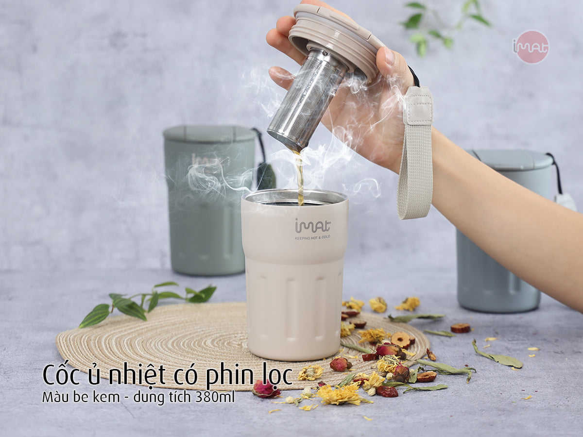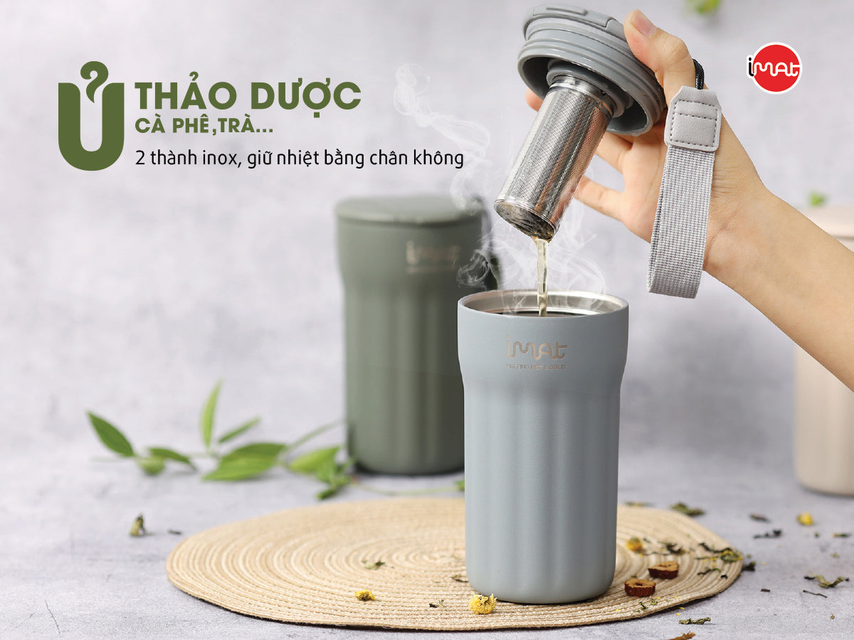 Để thưởng thức một ly nước thảo dược ấm áp hay trà yêu thích, việc sở hữu một chiếc cốc chất lượng là điều không thể thiếu. Cốc ủ nhiệt iMat, được làm từ inox 304 và cốc ủ 380ml là inox 316 cao cấp với lớp sơn sần powder coating tinh tế, không chỉ giữ nhiệt hiệu quả mà còn mang đến vẻ ngoài sang trọng. Với phin lọc siêu mịn đi kèm, cốc này giúp người dùng dễ dàng ủ trà hoặc thảo dược và mang theo suốt cả ngày.