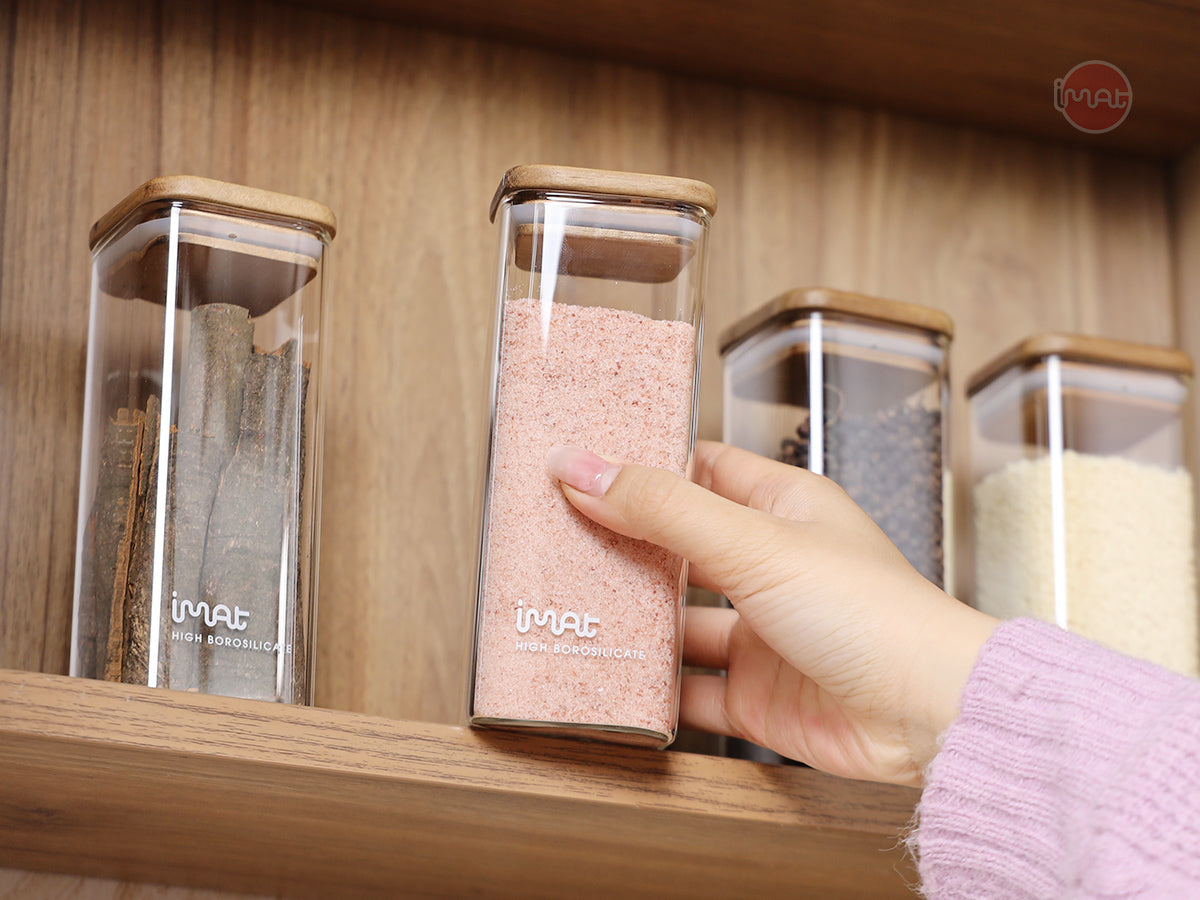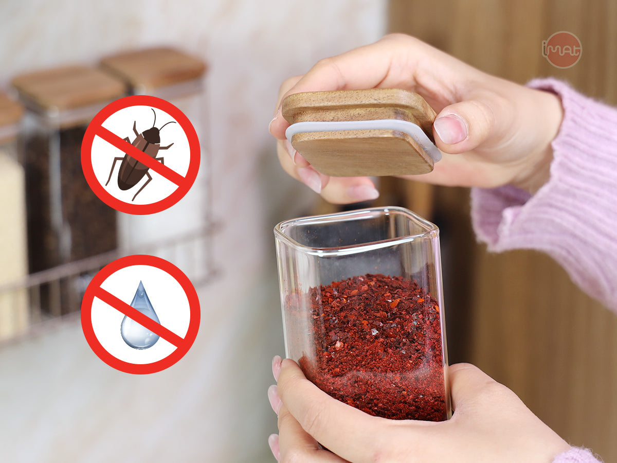 Bộ lọ gia vị thủy tinh nắp gỗ ACACIA thích hợp để lưu trữ: