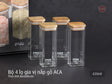 Bộ 4 lọ gia vị thuỷ tinh nắp gỗ Acacia