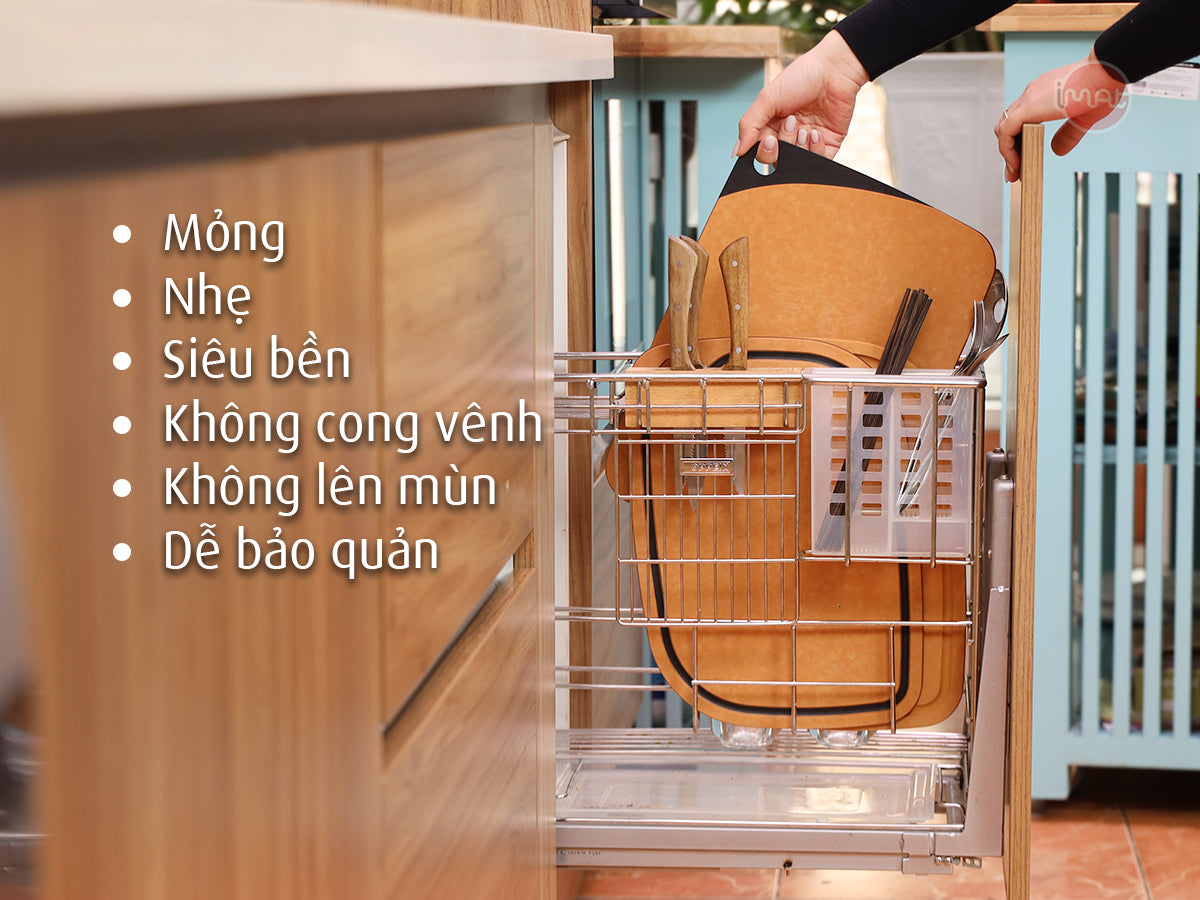 - Mỏng, nhẹ, siêu bền, không cong vênh, không lên mùn.