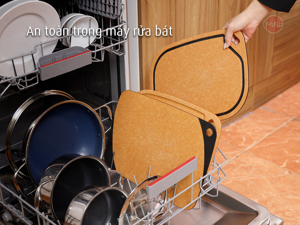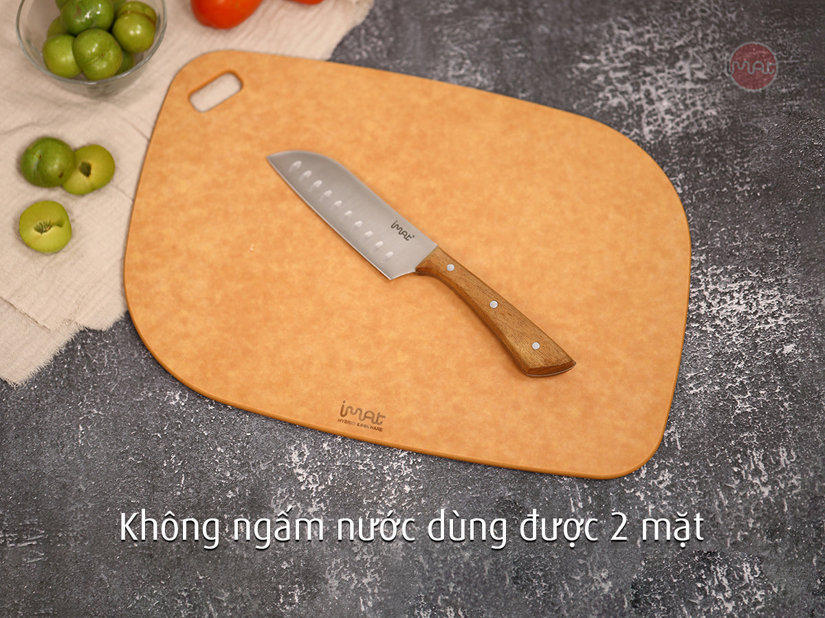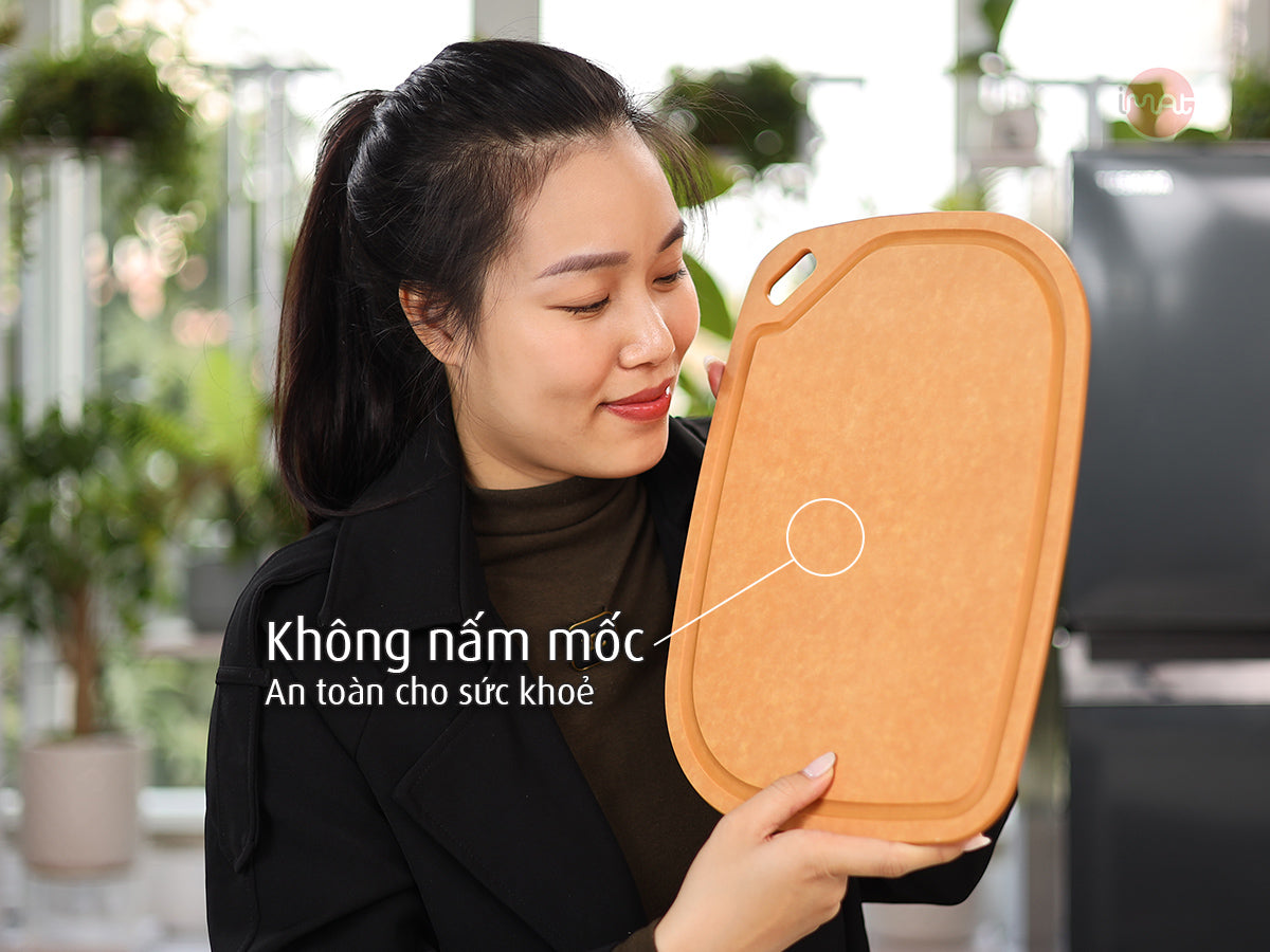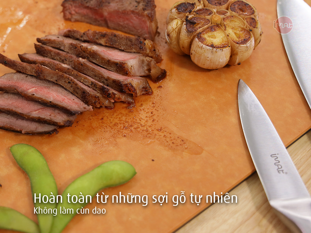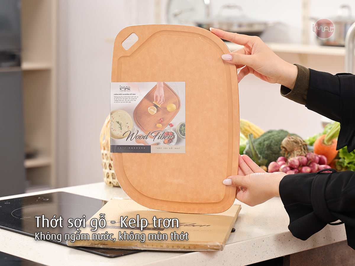 Hoàn toàn từ sợi gỗ tự nhiên được ép dưới áp lực 3000 tấn trong môi trường áp suất và nhiệt độ cao, thớt sợi gỗ iMat mang đến một trải nghiệm khác biệt: mỏng hơn, nhẹ hơn và đặc biệt không ngấm nước, giúp loại bỏ mùn thớt – nhược điểm lớn của thớt gỗ thông thường.