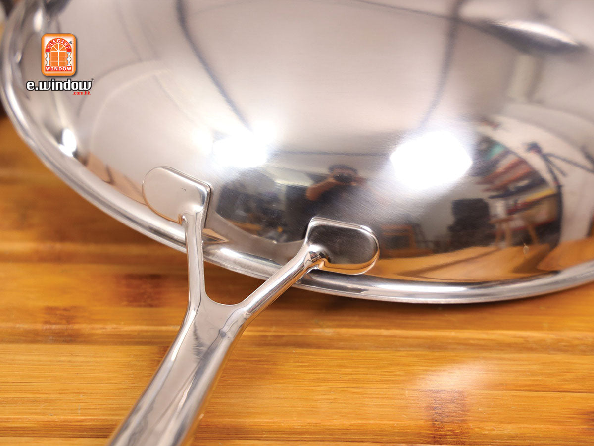 Thiết kế ngoại hình sang trọng: Mặt ngoài của chảo được làm từ inox sáng bóng, với vùng inox vòm cao tạo điểm nhấn sang trọng, giống như không gian ẩm thực của các nhà hàng cao cấp.