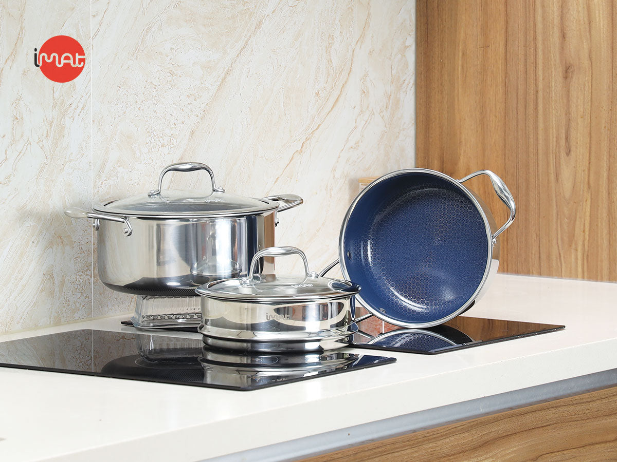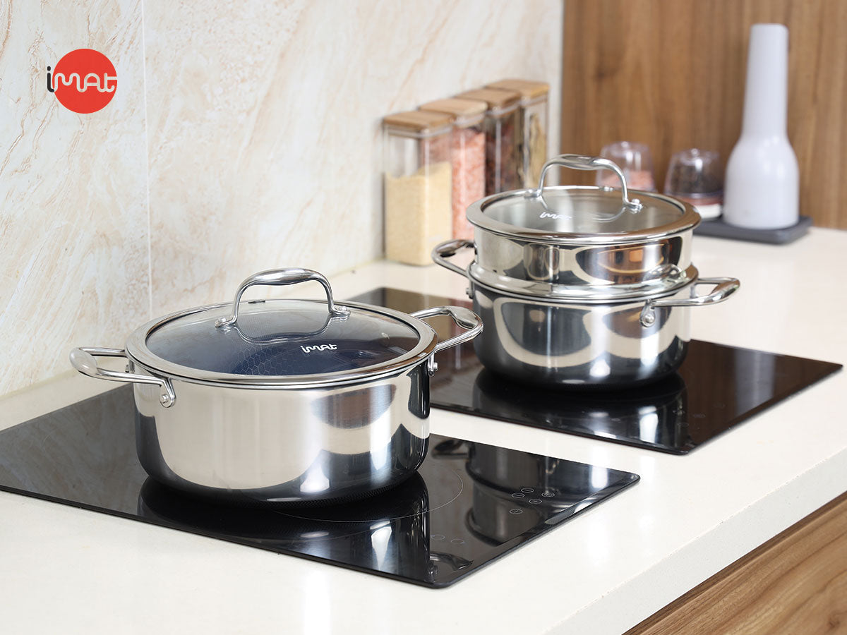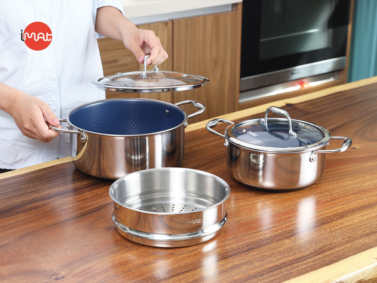 Bộ 2 nồi iMat Hybrid (20–24) + xửng 20cm: giải pháp nấu nướng an toàn, nhanh và dễ vệ sinh cho mọi gia đình.