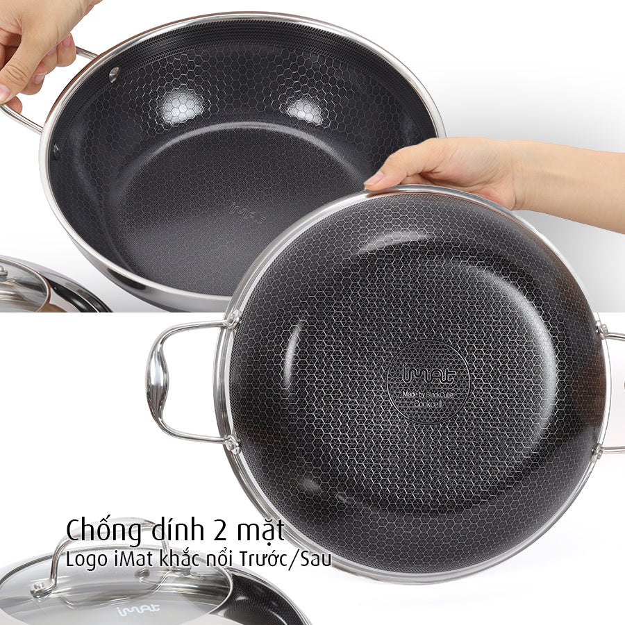 Chảo iMat Hybrid 24cm và 28cm mang đến sự tiện lợi, linh hoạt cho mọi bữa ăn gia đình với khả năng chống dính vượt trội và thiết kế tay cầm hai bên, phù hợp với mọi loại bếp