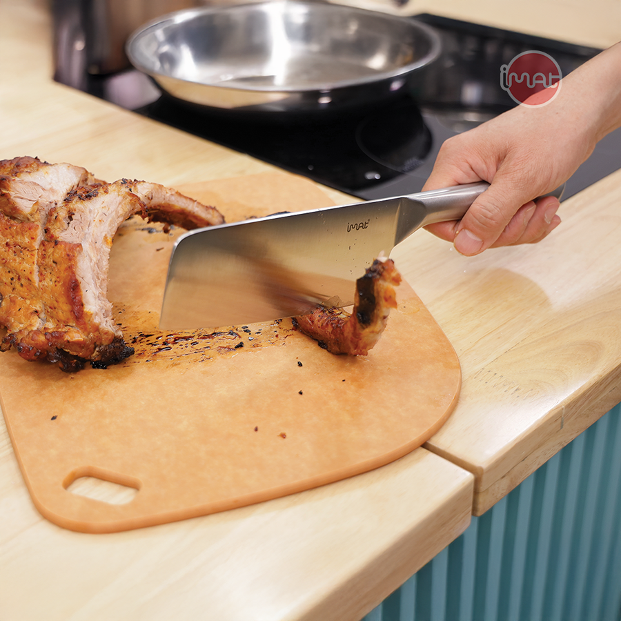 Hoàn toàn làm từ thép, từ lưỡi cho đến cán dao, sự ghép nối giữa cán và lưỡi được thiết kế vát, giúp dễ dàng rửa sạch và không bị kẹt thức ăn lưu cữu. Mẫu Dao Chặt cỡ nhỏ 12" là một con dao toàn diện với kích thước vừa phải, hoàn hảo cho mọi tác vụ cắt và thái, băm nhỏ, thái nhỏ, hoặc chặt thực phẩm vừa phải.