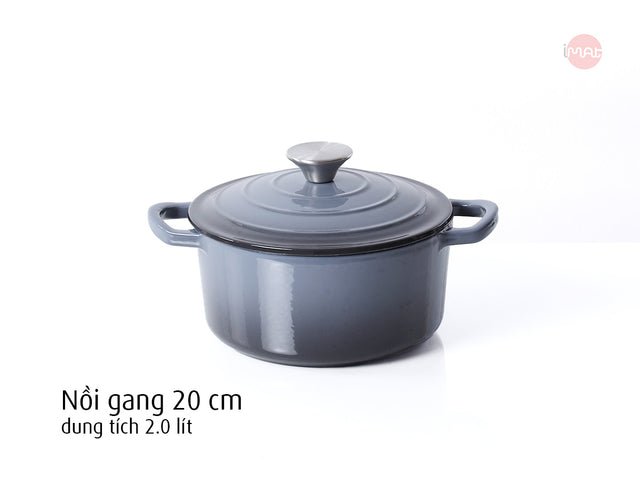 Nồi gang 20 cm | CI-E20 | 27 × 20 × 14 cm | 20 cm | 9.5 cm | 2.0 L | Xám đen | 3100 g |