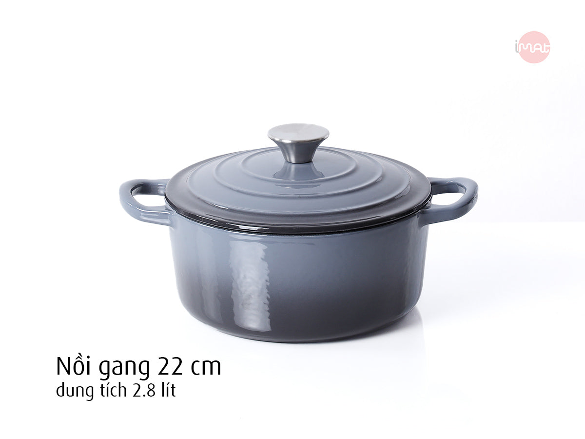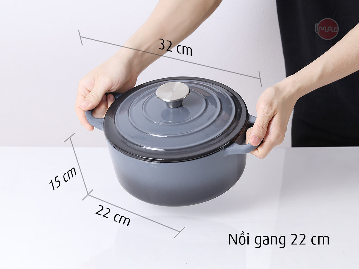Nồi gang 22 cm | CI-E22 | 32 × 22 × 15 cm | 22 cm | 10 cm | 2.8 L | Xám đen | 3500 g |