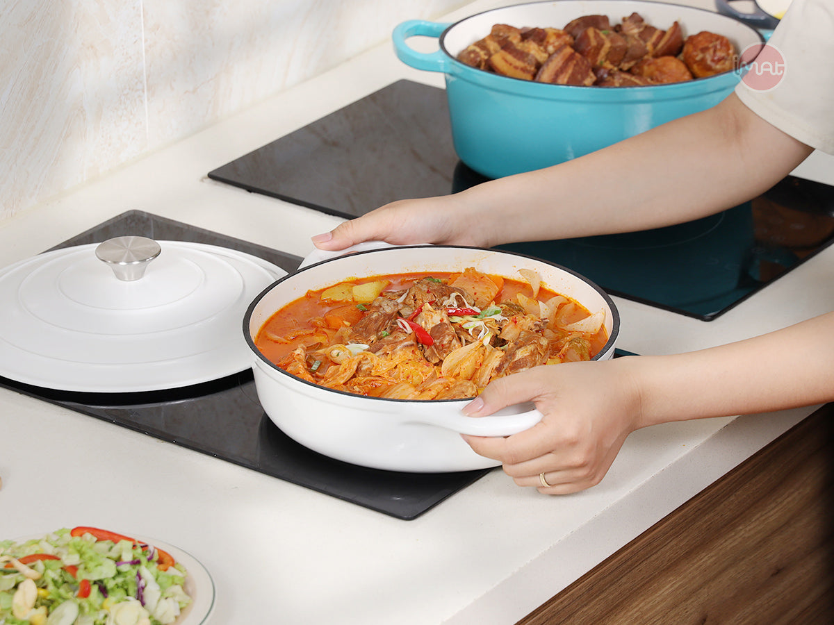 Sản phẩm được làm từ gang nguyên khối phủ men enamel cao cấp, vừa giữ nhiệt lâu, vừa dễ vệ sinh, đồng thời mang lại vẻ đẹp sang trọng cho căn bếp.