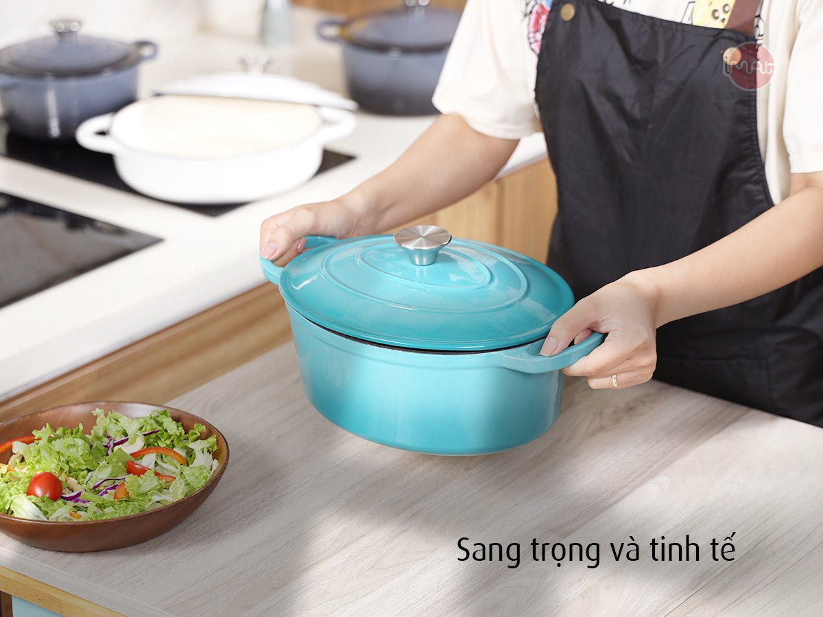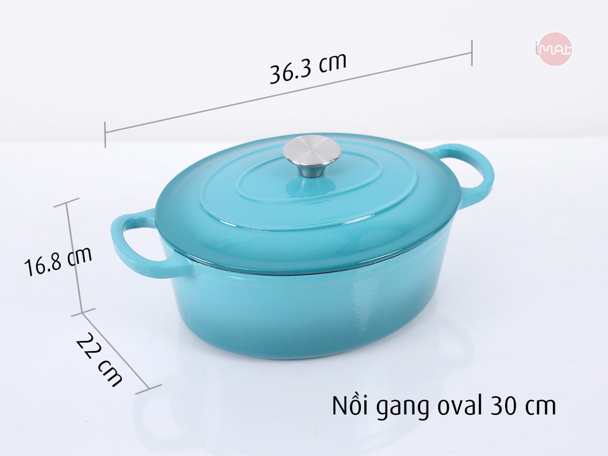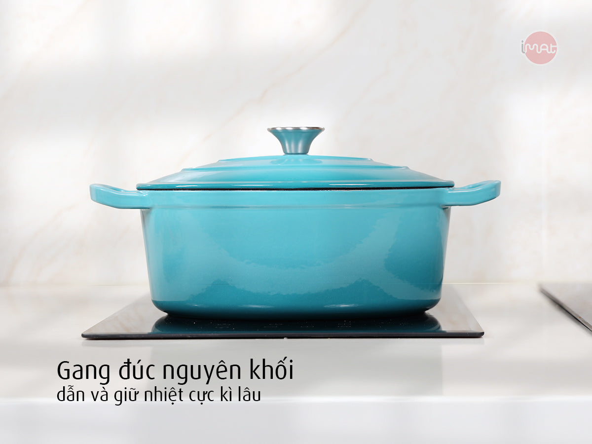 Nồi gang tráng men hình oval 30cm (Ø thực tế 22cm) là lựa chọn hoàn hảo cho những ai thích nấu các món nguyên con hoặc khối lớn như gà, vịt, cá… Hình dáng dài và sâu giúp món ăn chín đều từ trong ra ngoài, đồng thời mang lại sự sang trọng khi đặt trực tiếp lên bàn ăn.