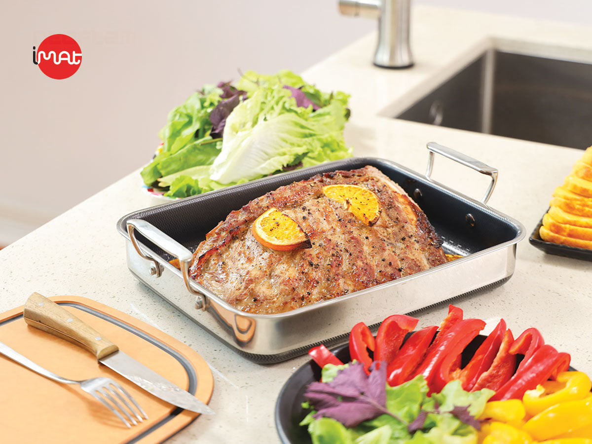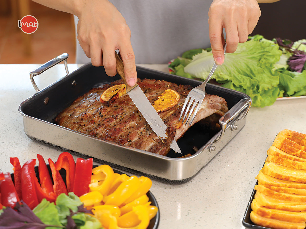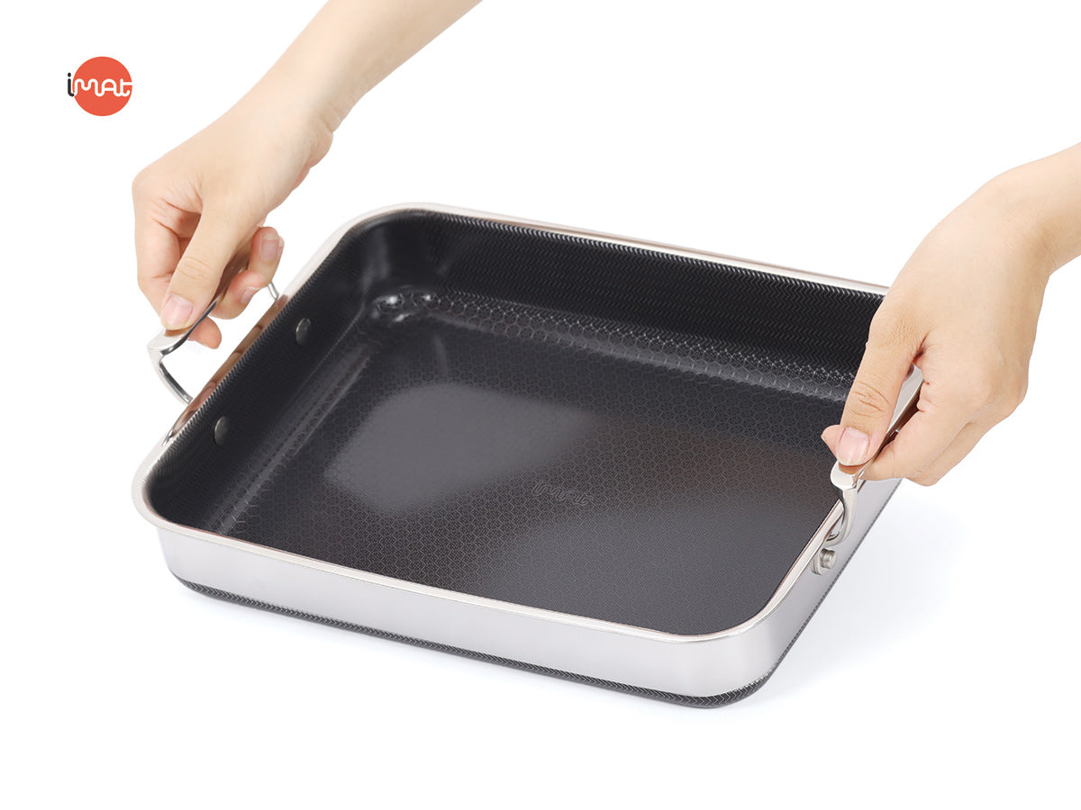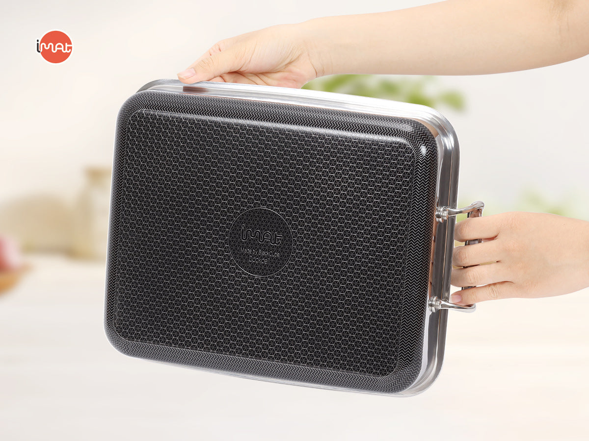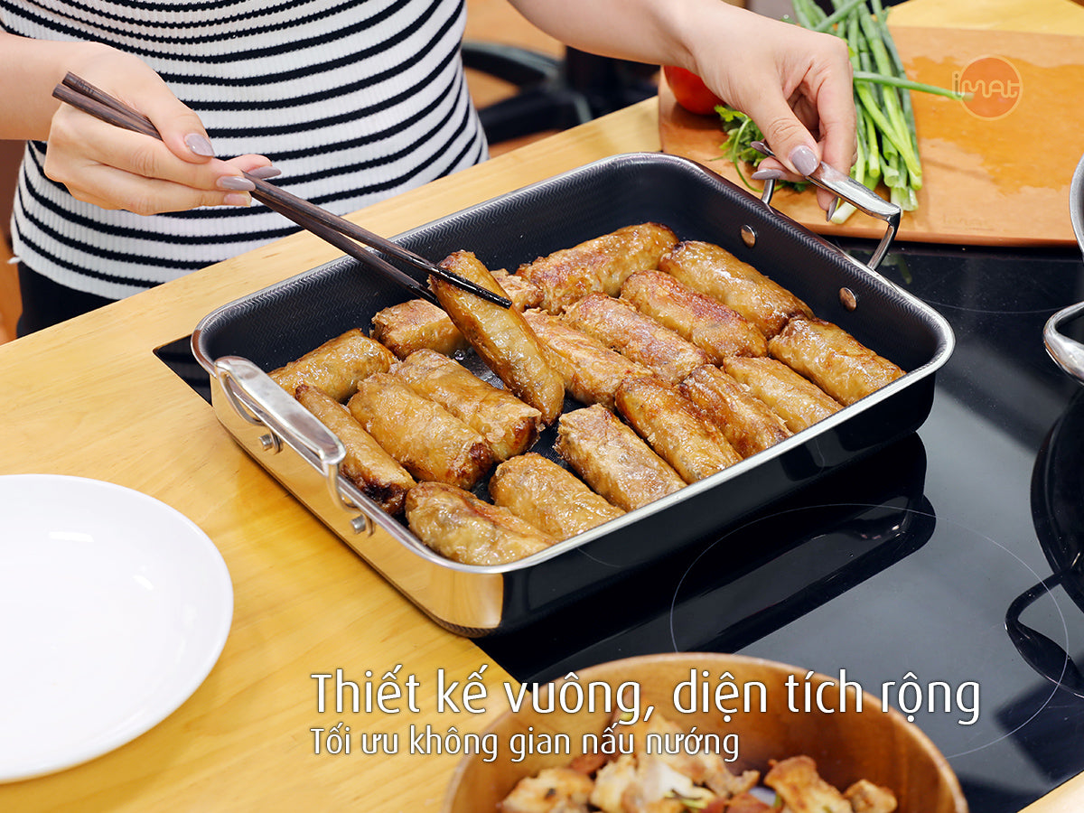 Chảo vuông đa năng iMat Hybrid là sự lựa chọn tối ưu cho các món ăn truyền thống và các món nướng bỏ lò, mang lại hương vị thơm ngon và tiện lợi cho mọi bữa ăn gia đình.