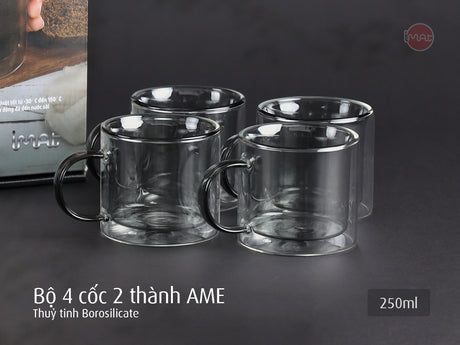 Bộ 4 lọ gia vị thuỷ tinh borosilicate ACA 420ml, nắp gỗ