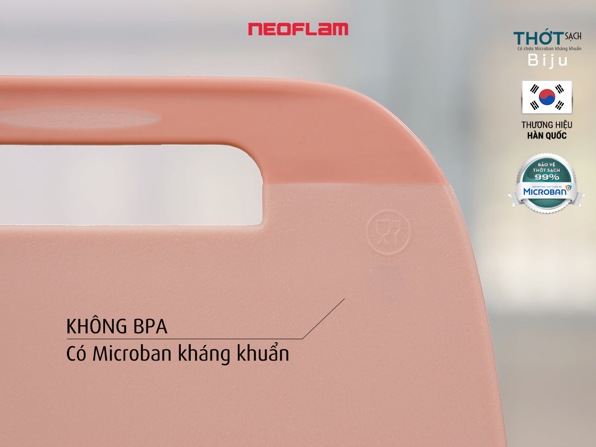 Chống khuẩn với Microban: Hoạt chất Microban được trộn lẫn với nhựa khi đúc sản phẩm là một hoạt chất chống khuẩn mạnh mẽ. Hoạt chất này ức chế sự phát triển của vi khuẩn và nấm mốc. Điều này đảm bảo thớt luôn sạch sẽ và an toàn với thức ăn.