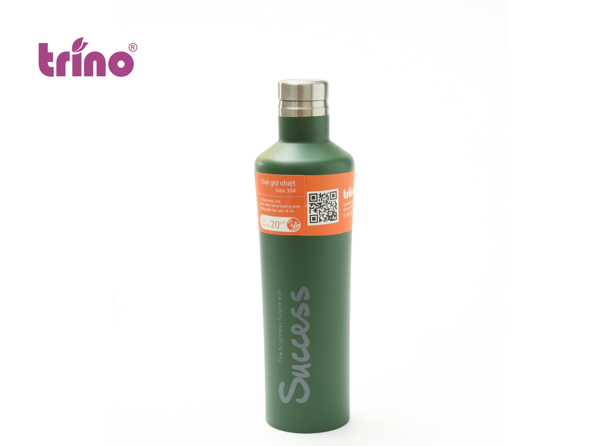 Cá tính và thời trang với chai giữ nhiệt Trino! Chai giữ nhiệt có lớp chân không ở giữa và 2 thành inox 304 nên giữ nhiệt tới 8 giờ. Dùng để trữ nước nóng hoặc lạnh. Thích hợp để giữ rượu lạnh, đồ uống có cồn; giữ nóng thức uống bổ dưỡng như thuốc bắc, trà thảo mộc. Dung tích chai 500ml.