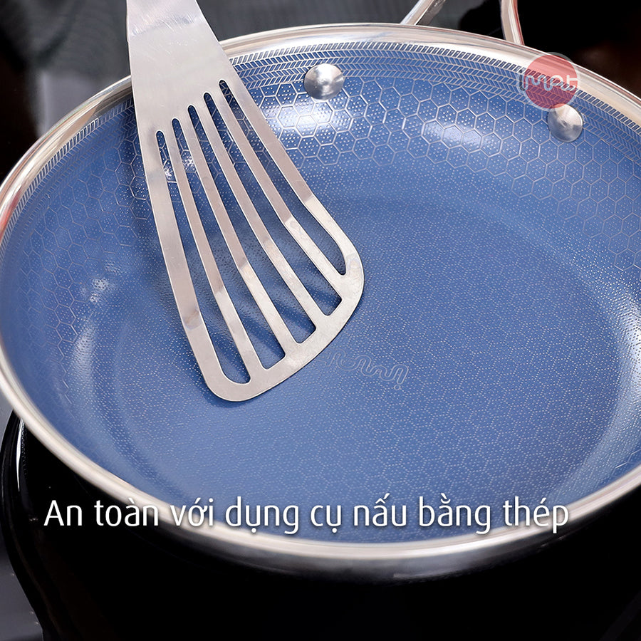 - Blackcube và lớp chống dính gốm xanh: Công nghệ khắc bề mặt inox tổ ong bảo vệ lớp chống dính ceramic, không chứa PFOA/PTFE, an toàn cho sức khỏe và thân thiện với môi trường.