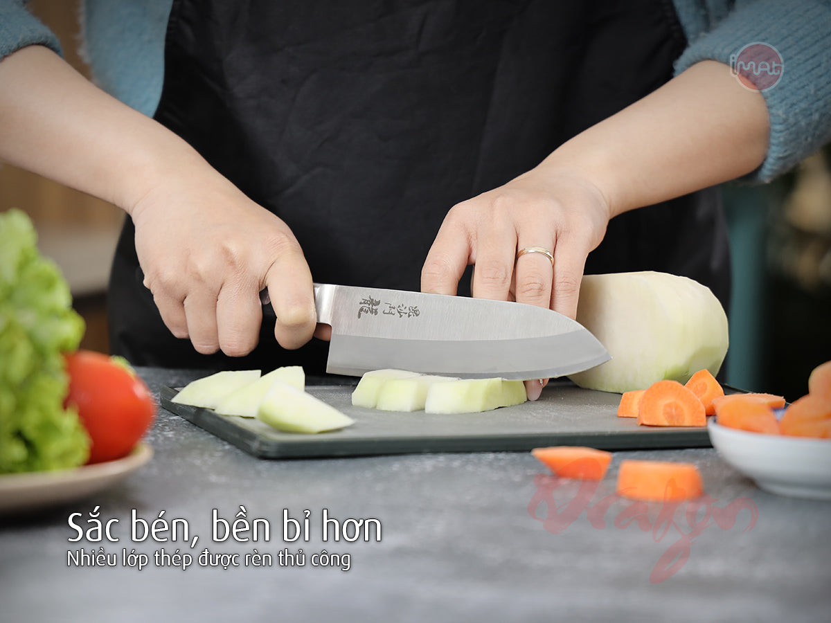 Dao DRAGON là dao cao cấp được làm thủ công theo kiểu rèn kiếm Samurai tại Nhật Bản bởi công ty Pearl Metal (Công ty có tuổi đời hơn 60 năm và 40% thị phần hàng gia dụng tại Nhật). Dao được làm từ thép Molybdenum vanadi, lưỡi sắc bén rất phù hợp bằm nhuyễn thịt, thái thịt cá, cắt lát mỏng, thái hạt lựu, thái rau củ, cắt khoai tây, gọt rau củ, gọt vỏ...