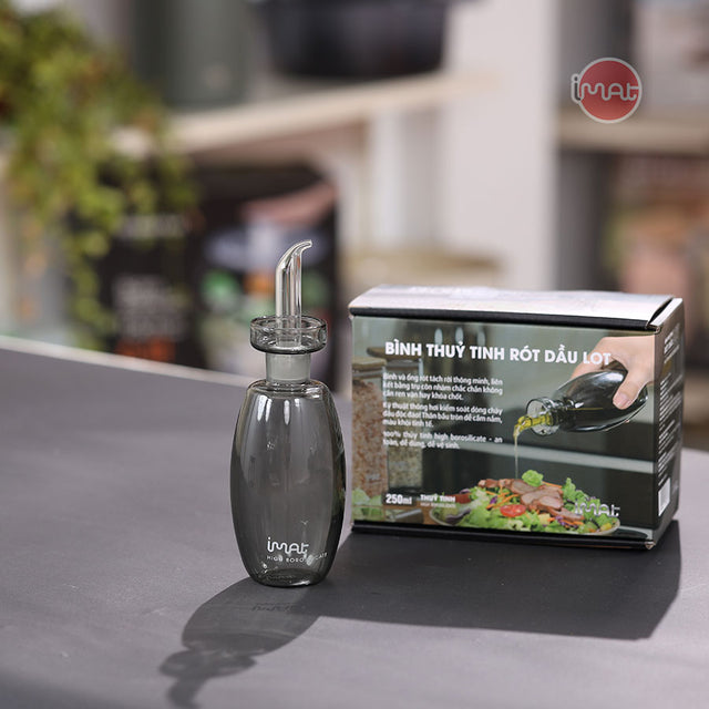 Bình rót dầu thủy tinh LOT 250ml – lựa chọn hoàn hảo cho căn bếp hiện đại. Chất liệu thủy tinh High Borosilicate chịu nhiệt tốt, an toàn và bền đẹp theo thời gian. Thiết kế vòi rót chống nhỏ giọt giúp kiểm soát lượng dầu dễ dàng, giữ bếp luôn sạch gọn.