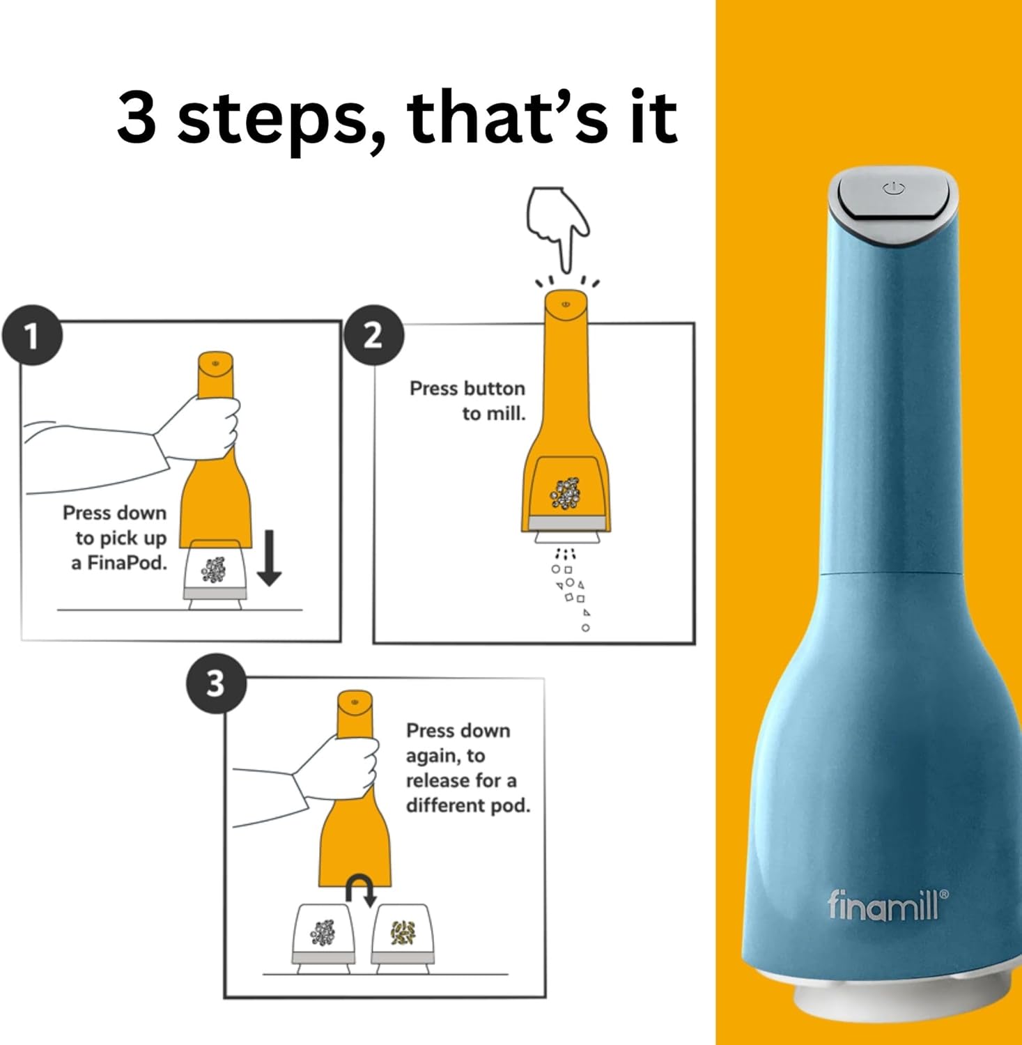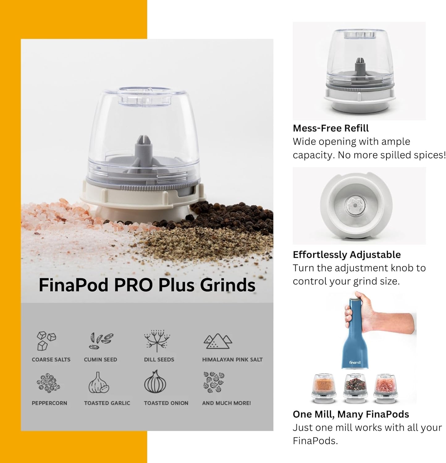 Máy xay gia vị FinaMill có cối xay riêng biệt được cấp bằng sáng chế giúp ngăn ngừa lẫn mùi vị giữa các loại gia vị. Lõi cối xay màu xám được thiết kế để xay các loại gia vị có dầu như tỏi bằm nhỏ, hạt thì là... trong khi lõi màu nâu phù hợp cho các loại gia vị cứng như hạt tiêu sọ, tiêu đen...