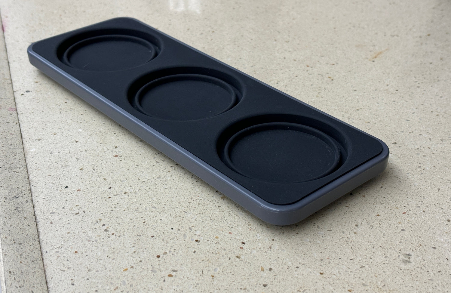 Khay nhựa đựng cối xay: Mỗi khay có thể đựng 3 cối xay. Dưới đế khay có các vết lõm tương ứng để xếp chồng khi có nhiều cối gia vị