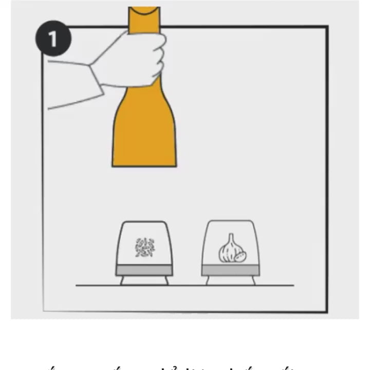 Đặt cối thẳng và cốc nhựa hướng phía trên lên khay đựng hoặc bề mặt bếp, lựa và nhấn tay cầm vào cối cho đến khi một tiếng click thì nghĩa là đã khớp. Như vậy là cối đã dùng để xay được. Nhấn nút trên tay cầm để xay gia vị.