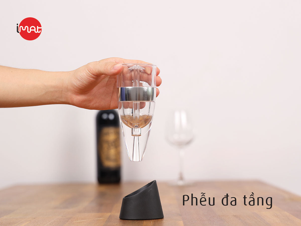 Được thiết kế chuyên nghiệp và tinh tế, phễu sục khí rượu vang iMat giúp rượu vang tiếp xúc với không khí nhiều hơn, từ đó mở ra hương thơm và tăng cường mùi vị của rượu, giúp tối ưu hóa hương vị và trải nghiệm của từng ly rượu