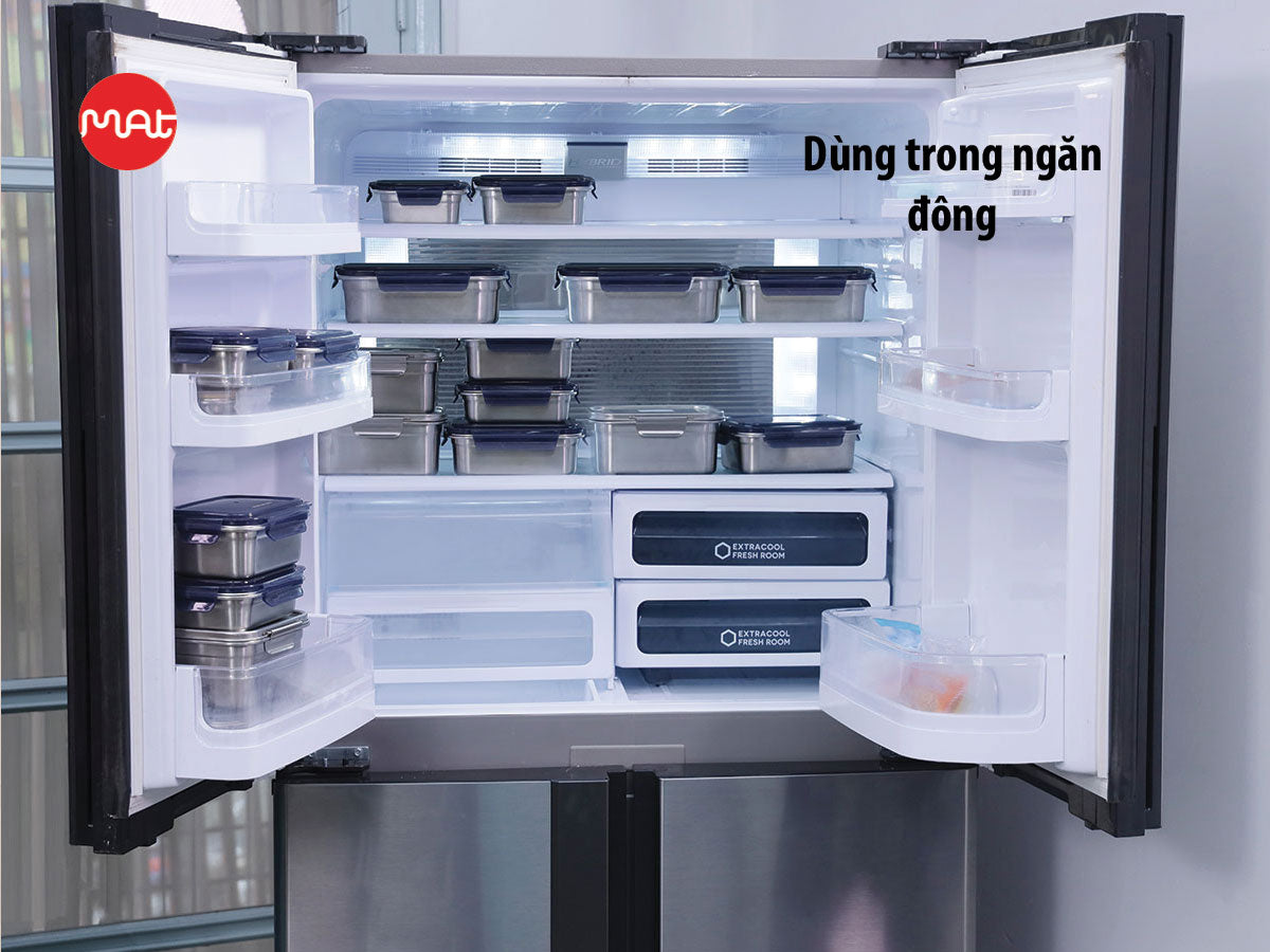 - Sản phẩm sử dụng công nghệ mới kết hợp inox 304, có khả năng sử dụng trong lò vi sóng, lò nướng, tủ lạnh, ngăn đông.