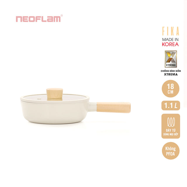 Chảo xào Fika có hai kích cỡ: Chảo 18cm và chảo 26cm có kèm vung. Sản phẩm được làm từ hợp kim nhôm đúc nguyên khối, cán gỗ tự nhiên. Chảo phủ gốm chống dính Xtrema cả hai mặt trong và ngoài. Chất liệu chống dính hoàn toàn từ tự nhiên nên an toàn cho sức khoẻ. Khả năng dẫn và giữ nhiệt cực tốt nên nấu món ăn dễ dàng và ngon hơn.