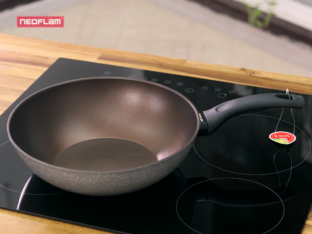 Thân bằng nhôm dập:Chảo được làm từ nhôm dập với độ dày thành 3.3mm, giúp tản nhiệt tốt và tăng cường khả năng chống trầy xước.
