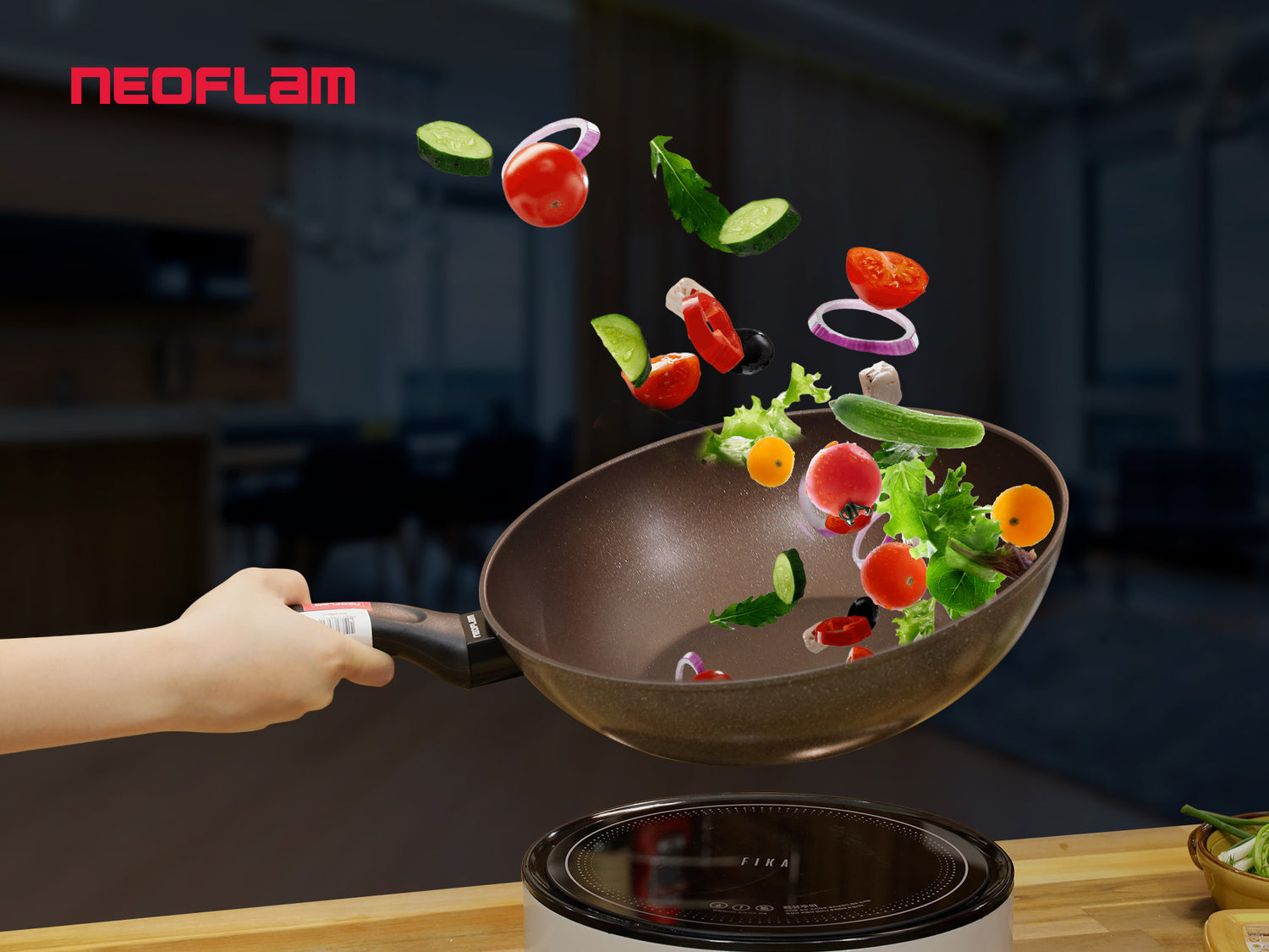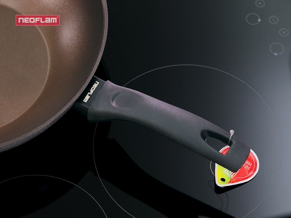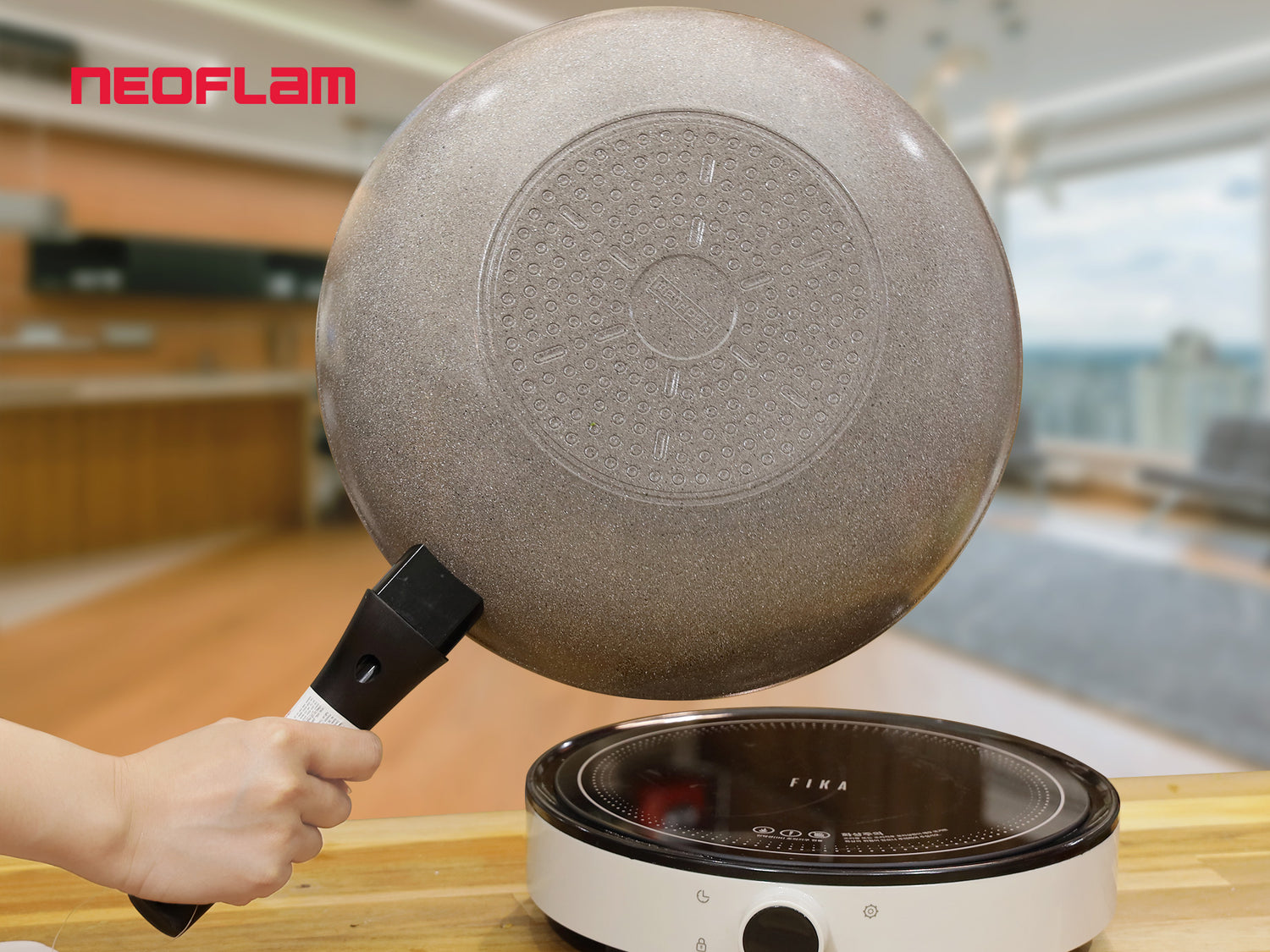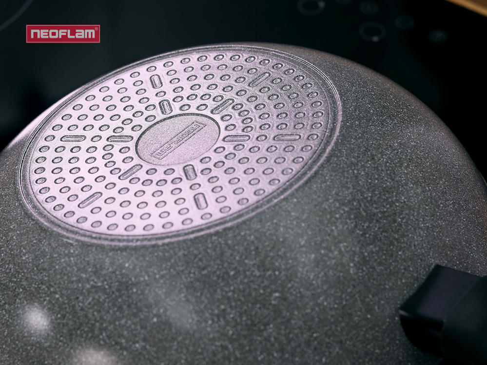 Đáy từ kiểu đinh tán:Đáy dày 3.3mm hấp thu nhiệt lượng tối đa từ bếp, giúp phân tán nhiệt đều trên mặt chảo, làm cho món ăn chín đều và thơm ngon hơn.