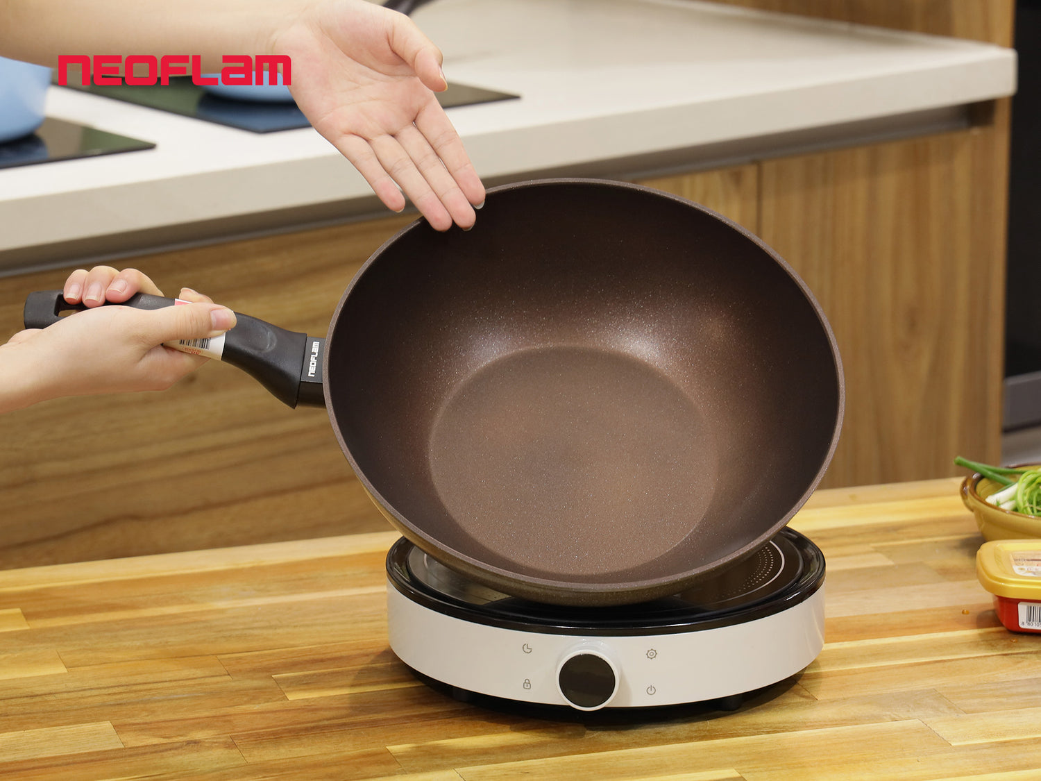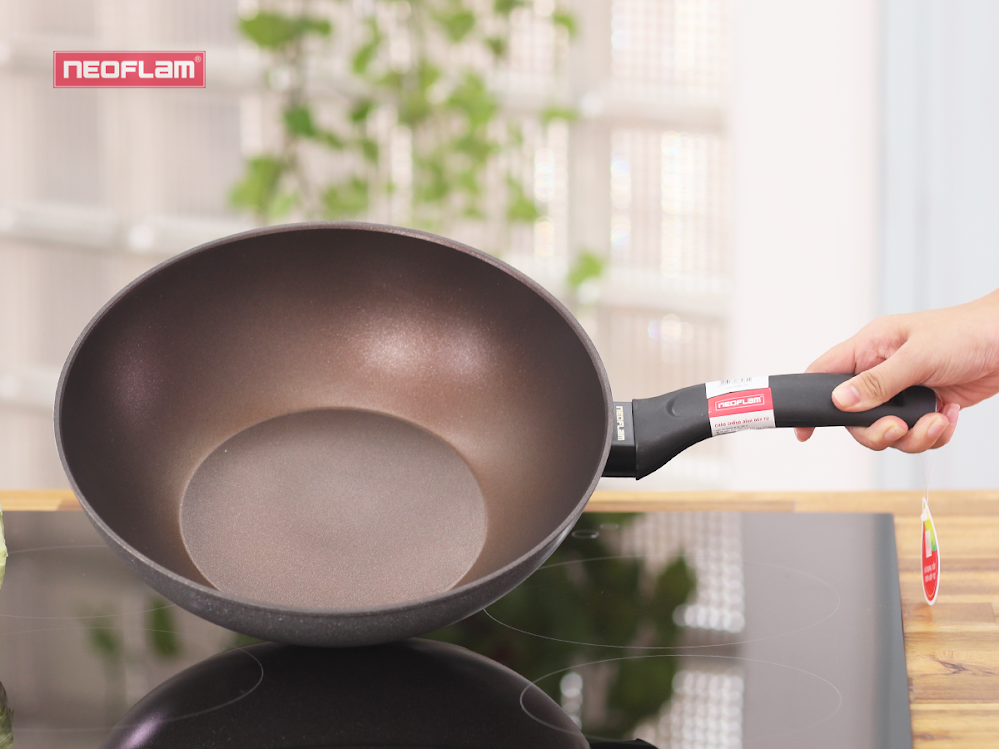 Kích thước lớn: Với đường kính 30cm, chảo có lòng sâu và thành khum vào trong, giúp phân bố nhiệt đều và làm cho món ăn chín đều, giữ nguyên đặc tính của thực phẩm.