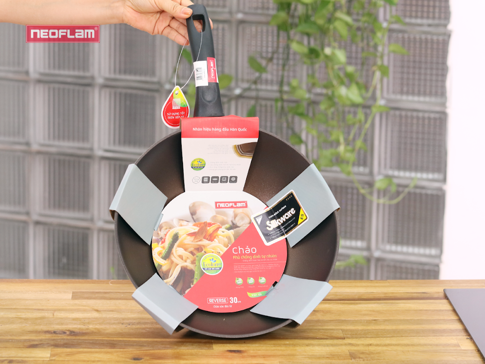Chảo xào chống dính cỡ lớn Reverse 30cm với công nghệ siêu chống dính Silkware của hãng Daikin từ Nhật Bản, đảm bảo an toàn tuyệt đối cho người sử dụng. Với thiết kế lòng chảo rộng, bạn có thể dễ dàng đảo và trộn các loại thực phẩm cùng gia vị, thậm chí sử dụng để tráng bánh xèo Nam Bộ hay nấu canh cho gia đình từ 4-6 người.