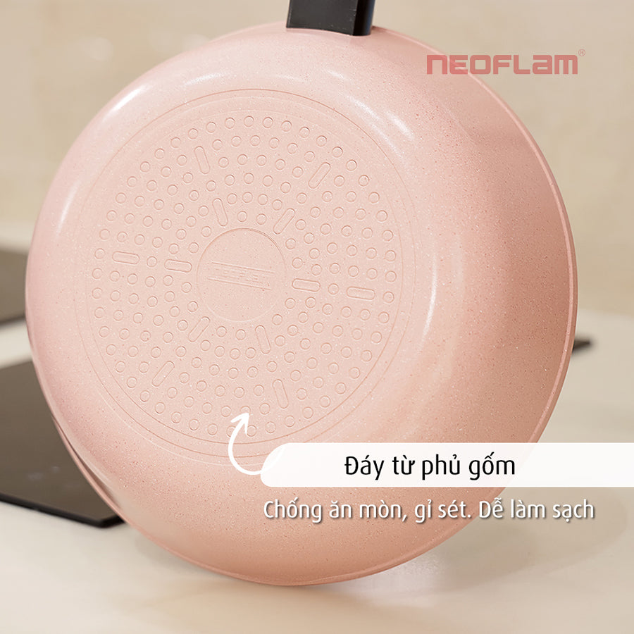 Đáy từ kiểu đinh tán. Đáy dày 3.5mm giúp hấp thu nhiệt lượng tốt từ các kiểu bếp, đặc biệt bếp Từ. Khả năng phân tán nhiệt cao giúp nhiệt toả đều trên mặt chảo làm cho món ăn chín đều và ngon hơn.