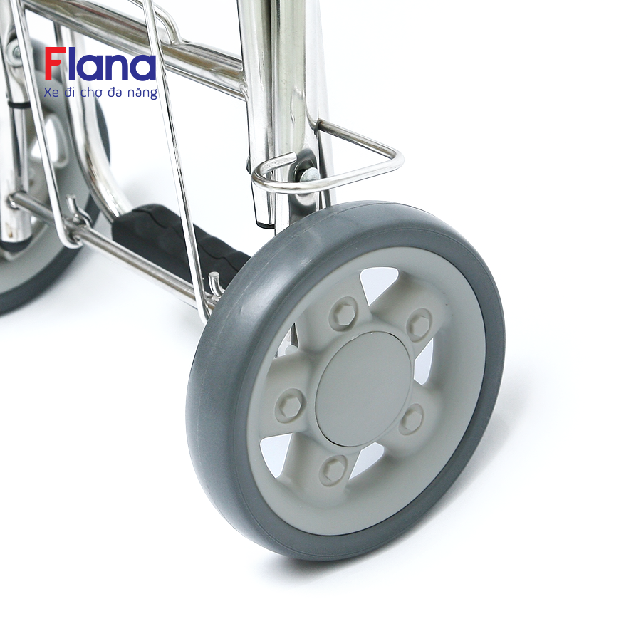 Khung xe bằng inox dày, chắc chắn. Gập gọn khi cất trữ trong nhà, trong bếp.