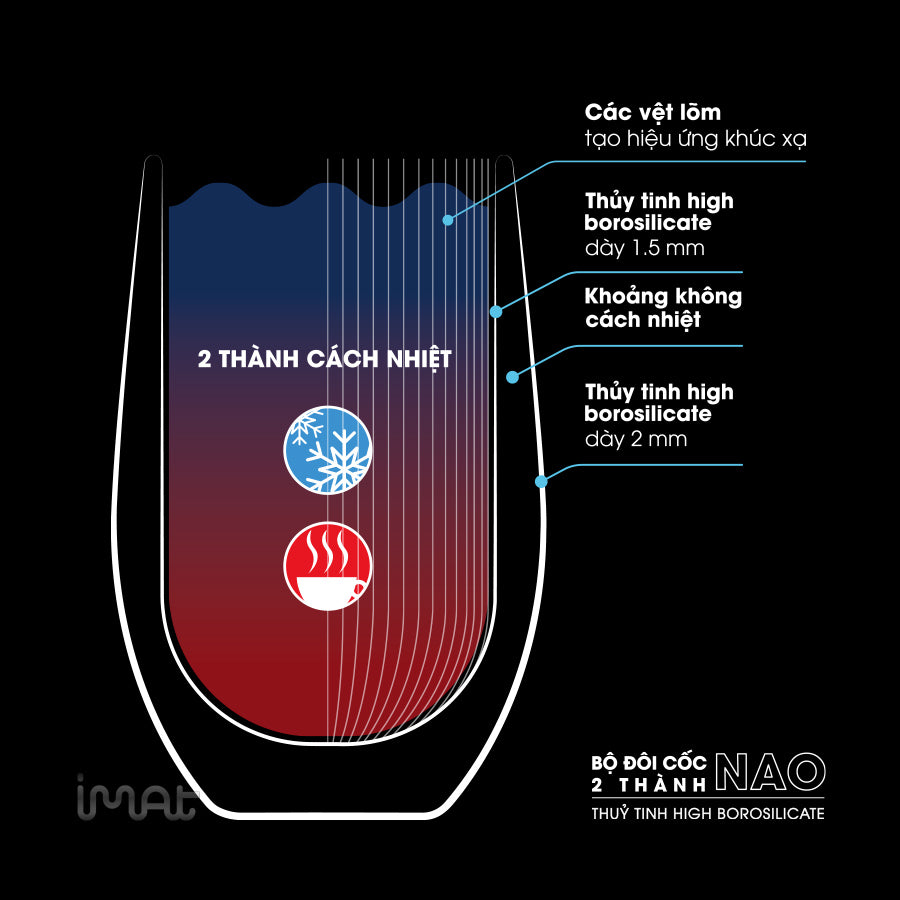 Bộ 2 Cốc Hai Thành NAO là lựa chọn lý tưởng cho những ai muốn một chiếc cốc vừa đẹp vừa hữu dụng. Từ thiết kế lòng khói nghệ thuật đến hiệu quả giữ nhiệt và độ bền của thủy tinh High Borosilicate, NAO mang lại trải nghiệm thưởng thức đồ uống cao cấp ngay tại nhà.