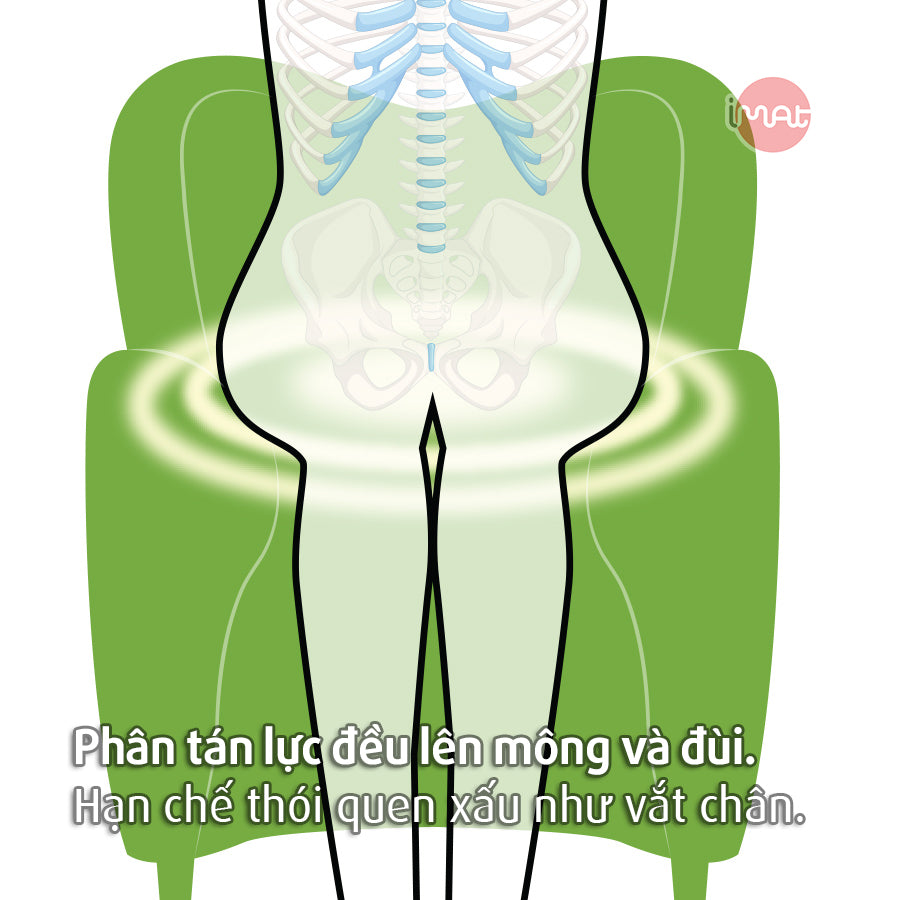 - Ngồi sâu vào ghế, tựa lưng sát ghế