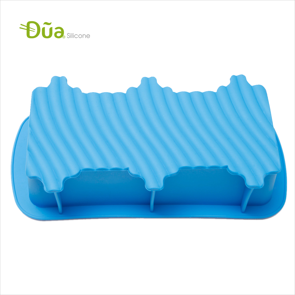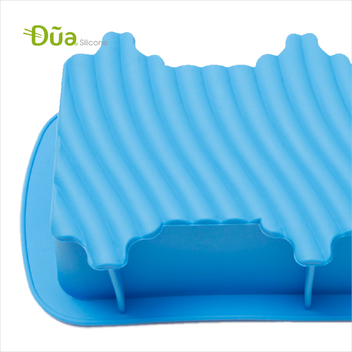 Hình chữ nhật với mặt khuôn có gân dưới đáy.. Bằng Silicone đúc nguyên khối, với chức năng chống dính tuyệt hảo. Mềm dẻo nên dễ dàng cất trữ và bảo quản. Chịu nhiệt nướng tới 220°C. Silicone tiêu chuẩn Châu Âu, an toàn với sức khỏe. Chất liệu được dùng trong y tế, đồ nấu bếp, núm ti giả cho bé....